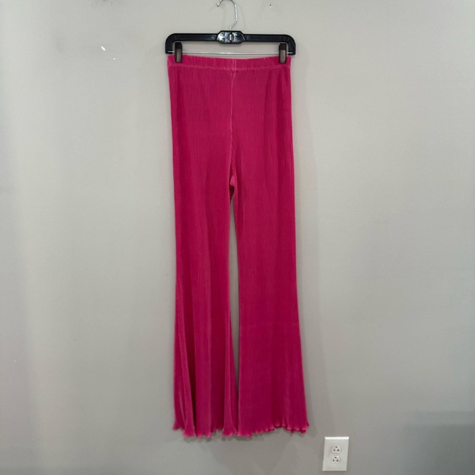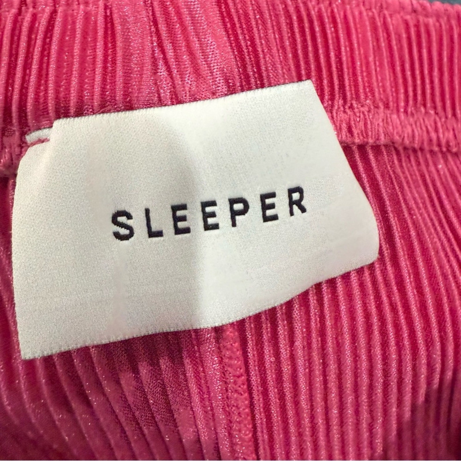 SLEEPER Pajama SET Origami Pleated Button Down Top Wide Leg Pants in Hot Pink