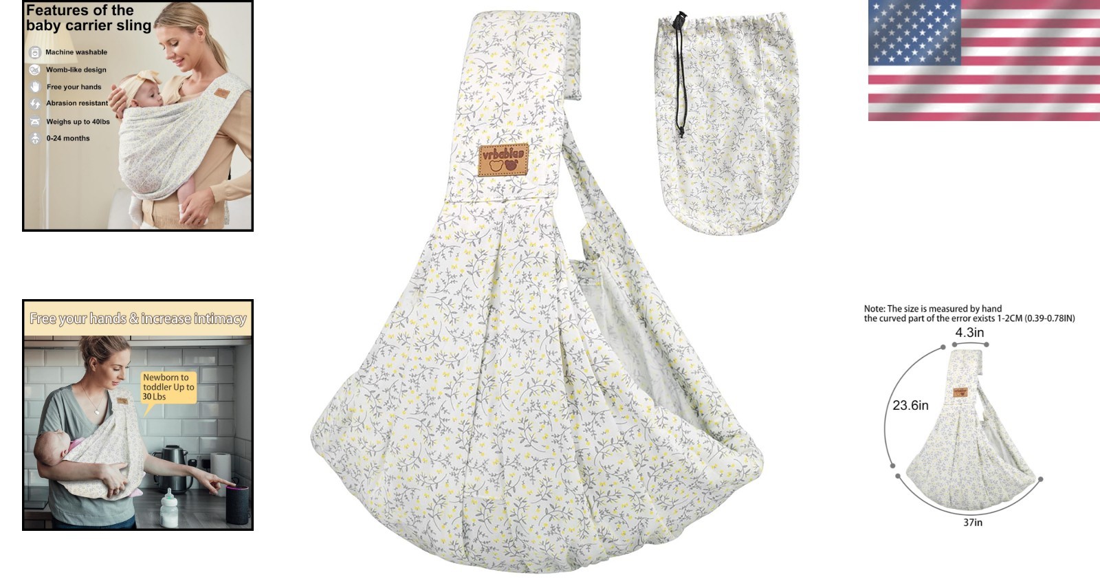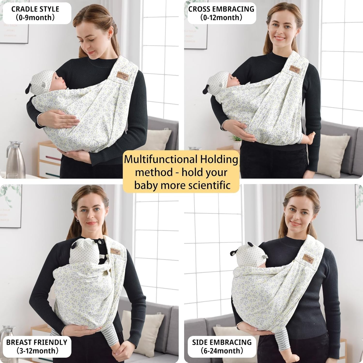 Soft Cotton Newborn Baby Sling with Adjustable Straps Multiple Carry Positions