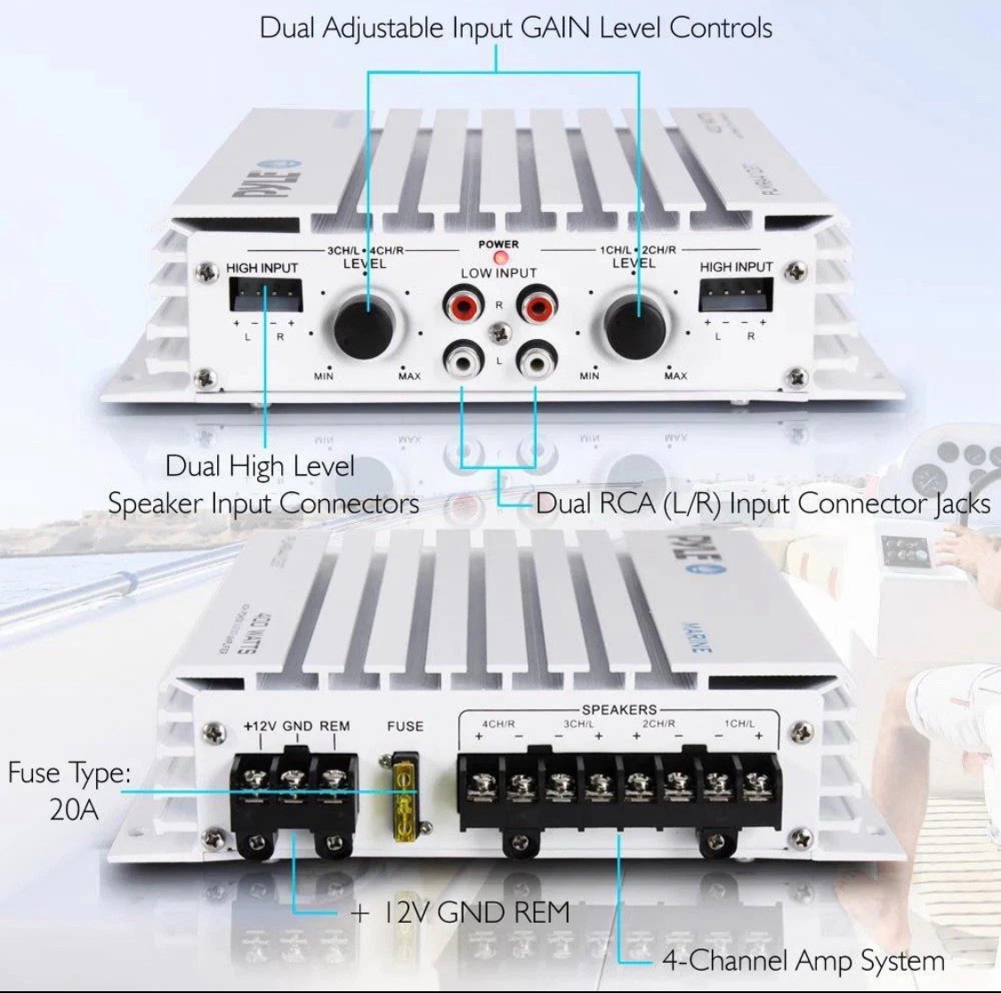 Pyle PLMRA410BT 4 Channel Elite Bluetooth Marine Amplifier