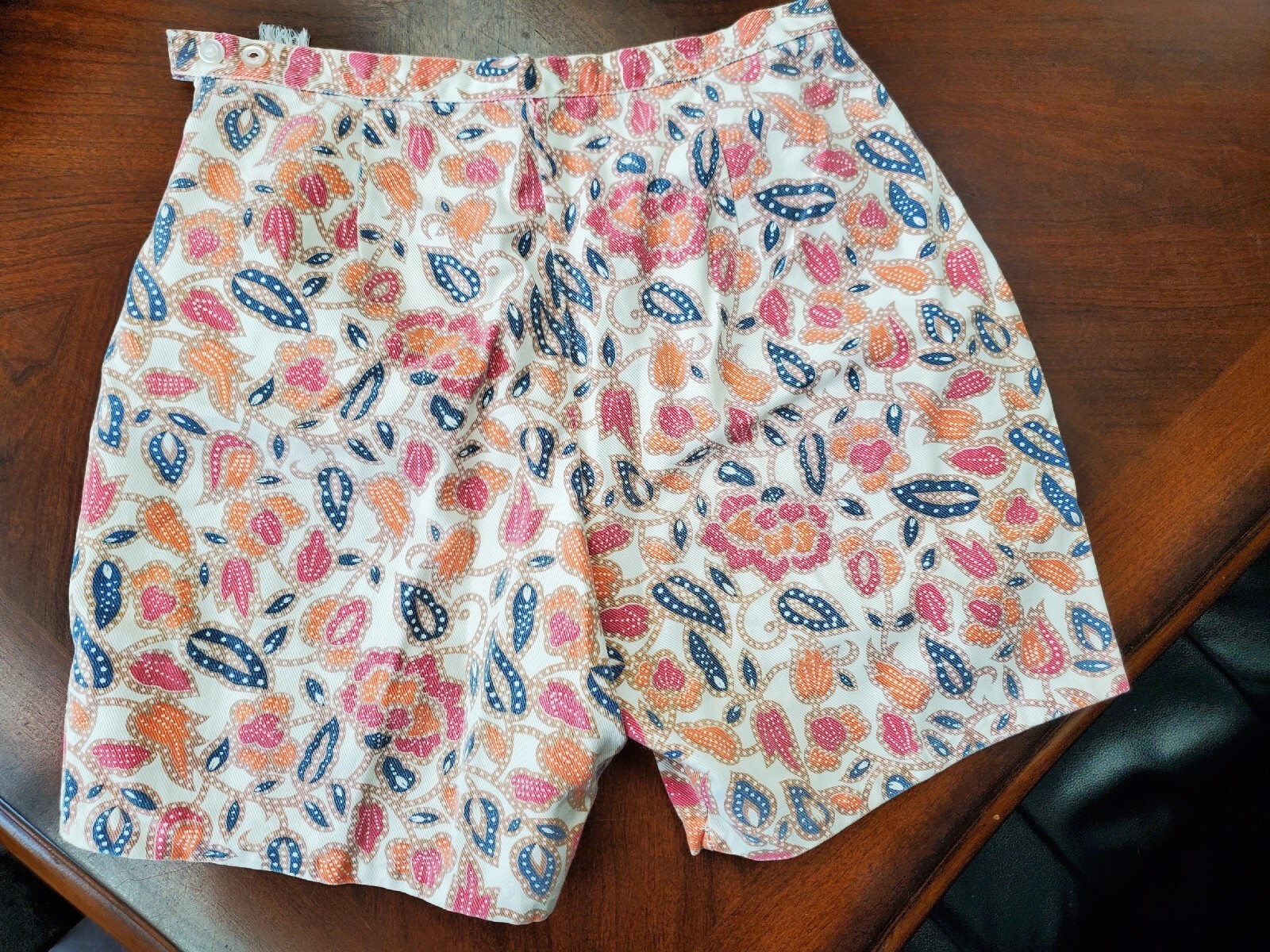 как выглядит Vintage 70s Mod Womens Youth Cotton Shorts XS 25" Waist Paisley Floral Side Zip фото