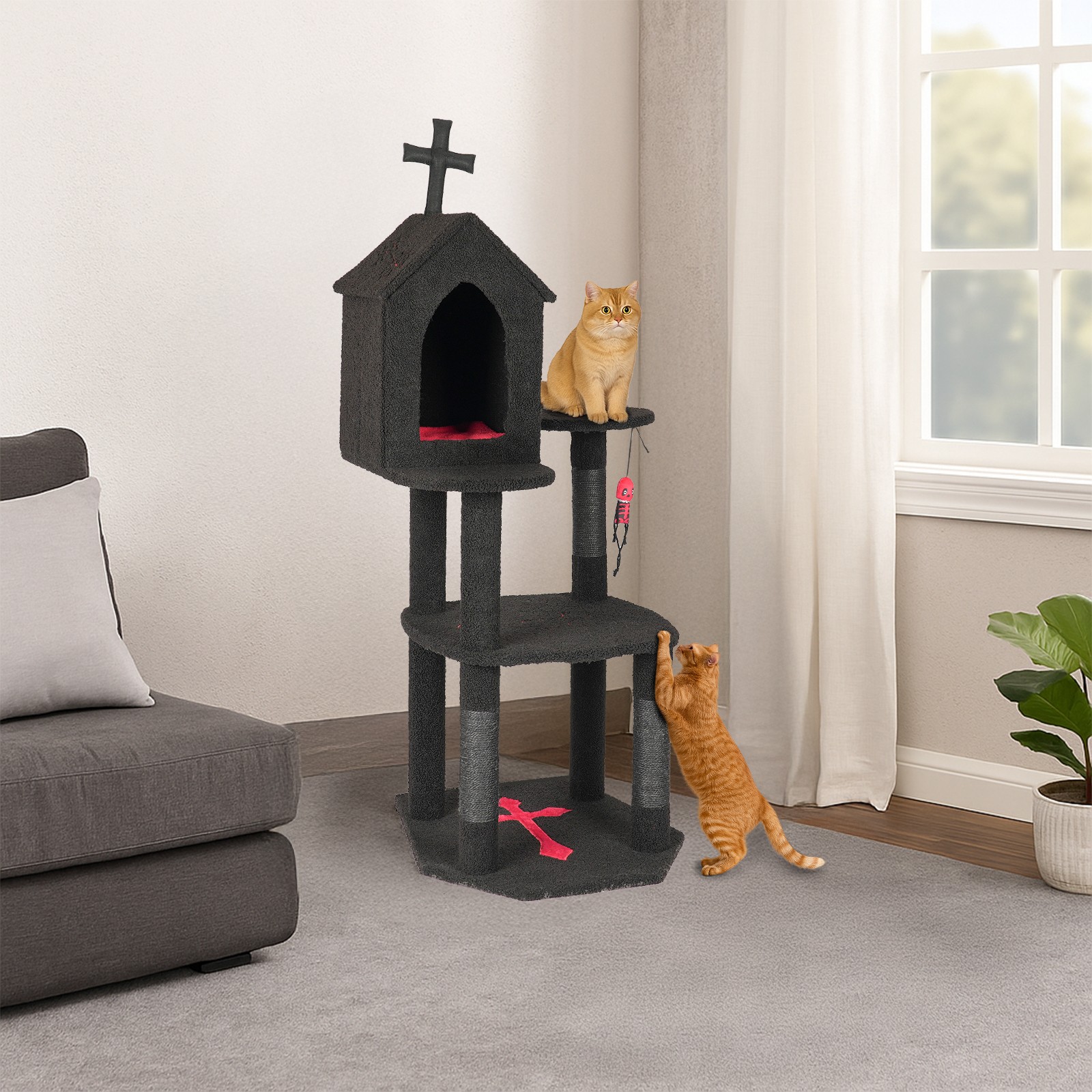 как выглядит Gothic Cat Tree with Coffin Bed 57" Tower with Spacious Condo Scratching Post фото