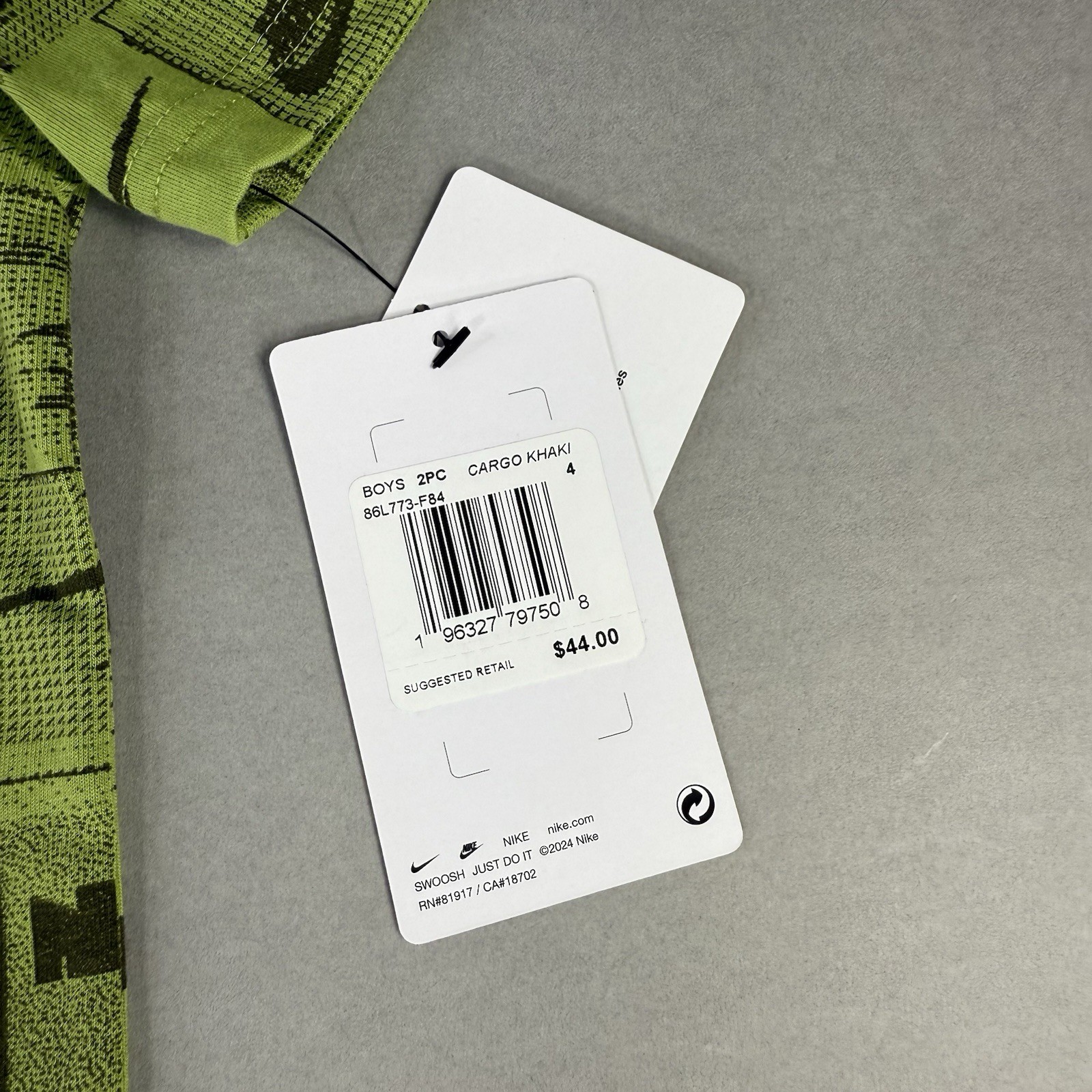 как выглядит Nike 2-Piece Set Shirt Shorts XS 3-4 Yrs Green Swoosh All Over Print Boys New фото
