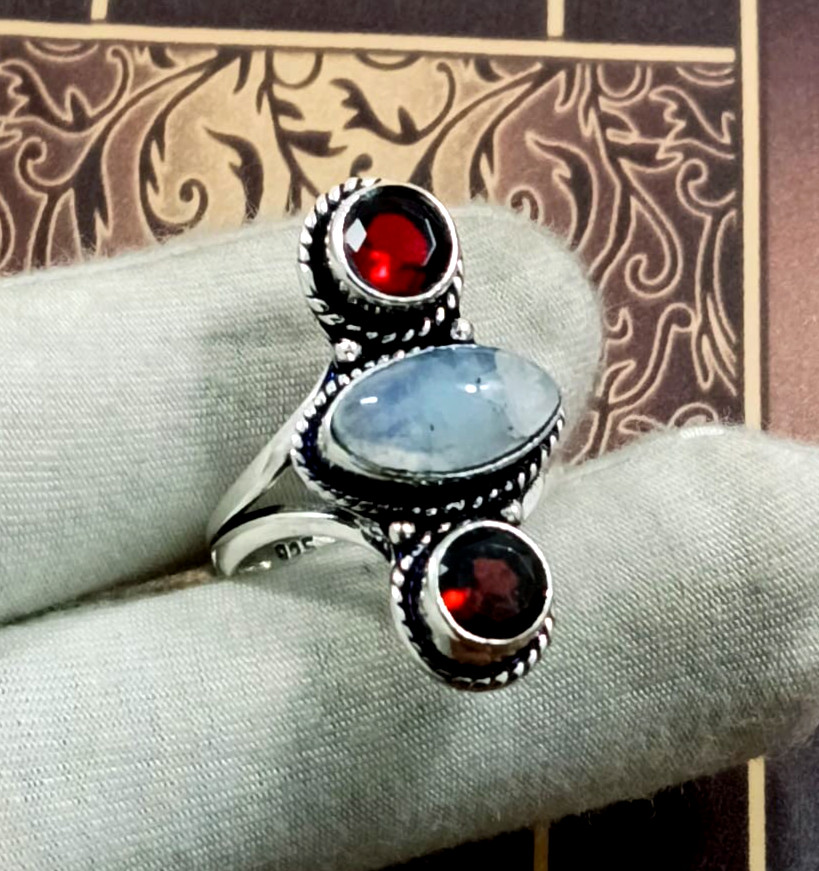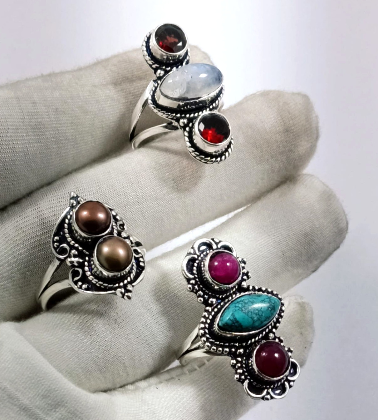 • Multi Gemstone Rings, 925 Sterling Silver, Handmade Rings Customized Size''