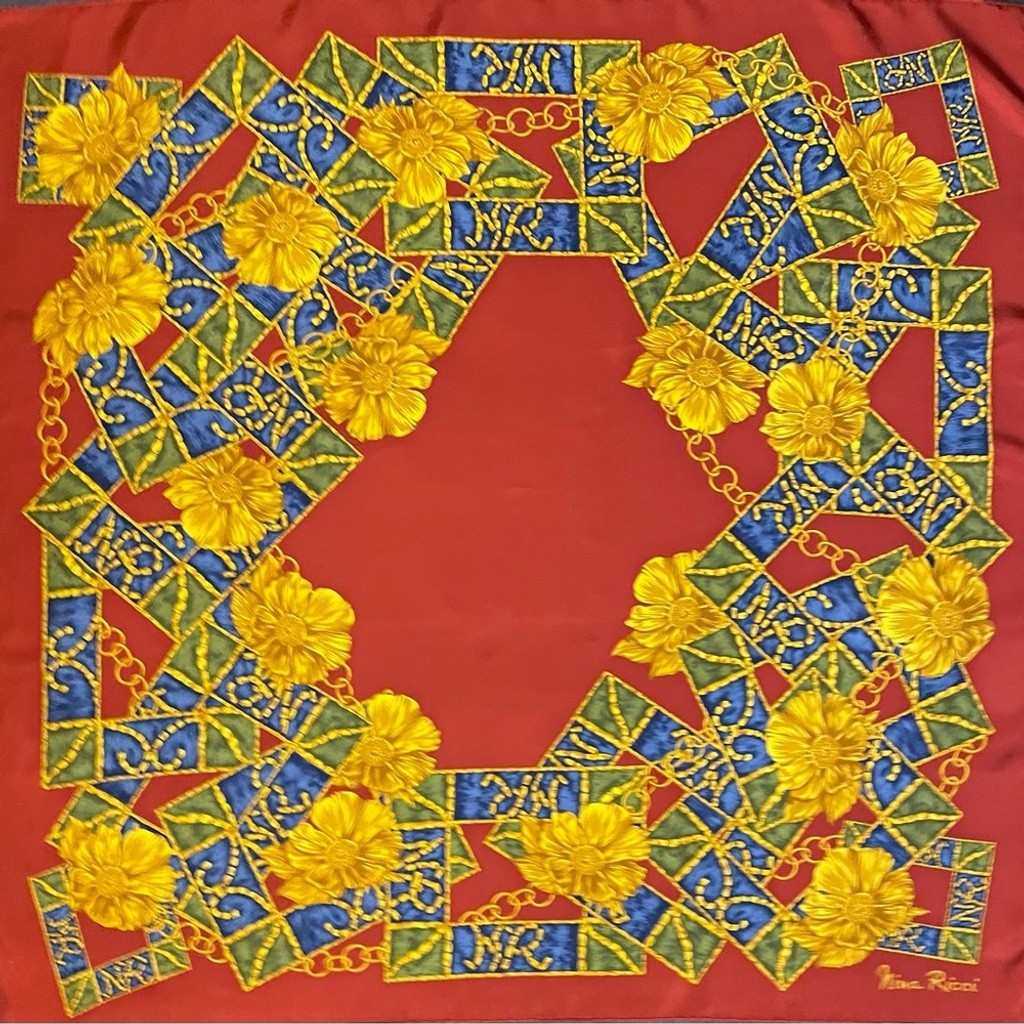 как выглядит Gorg Nina Ricci Silk Scarf Bold Print 34 In Sq Excellent Condition фото