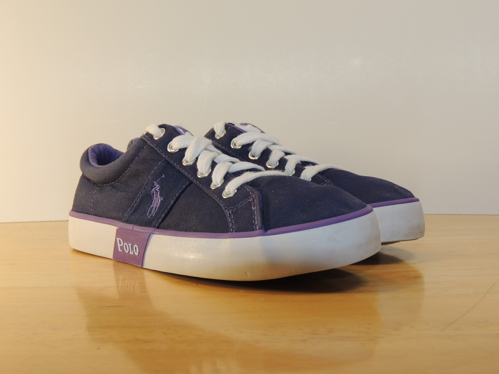 Kids Youth GS Polo Ralph Lauren Shoes Sneakers Blue Purple Pony 7B Canvas Casual
