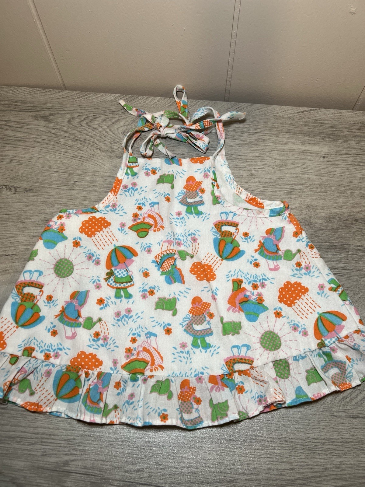 как выглядит Vintage 70 s Print Baby Girl Dress 12-18 Months Shoulder Tie Retro Sun Rain фото