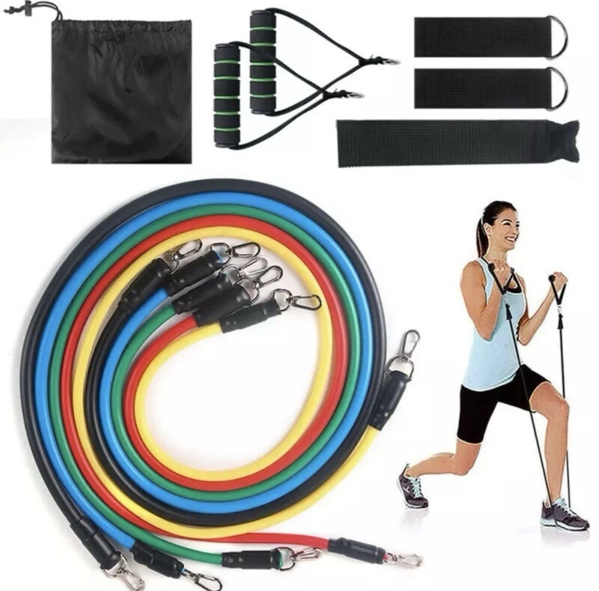 11 PCS Resistance Band Set Yoga Pilates Abs Exercise Fitness Tube Workout Bands
