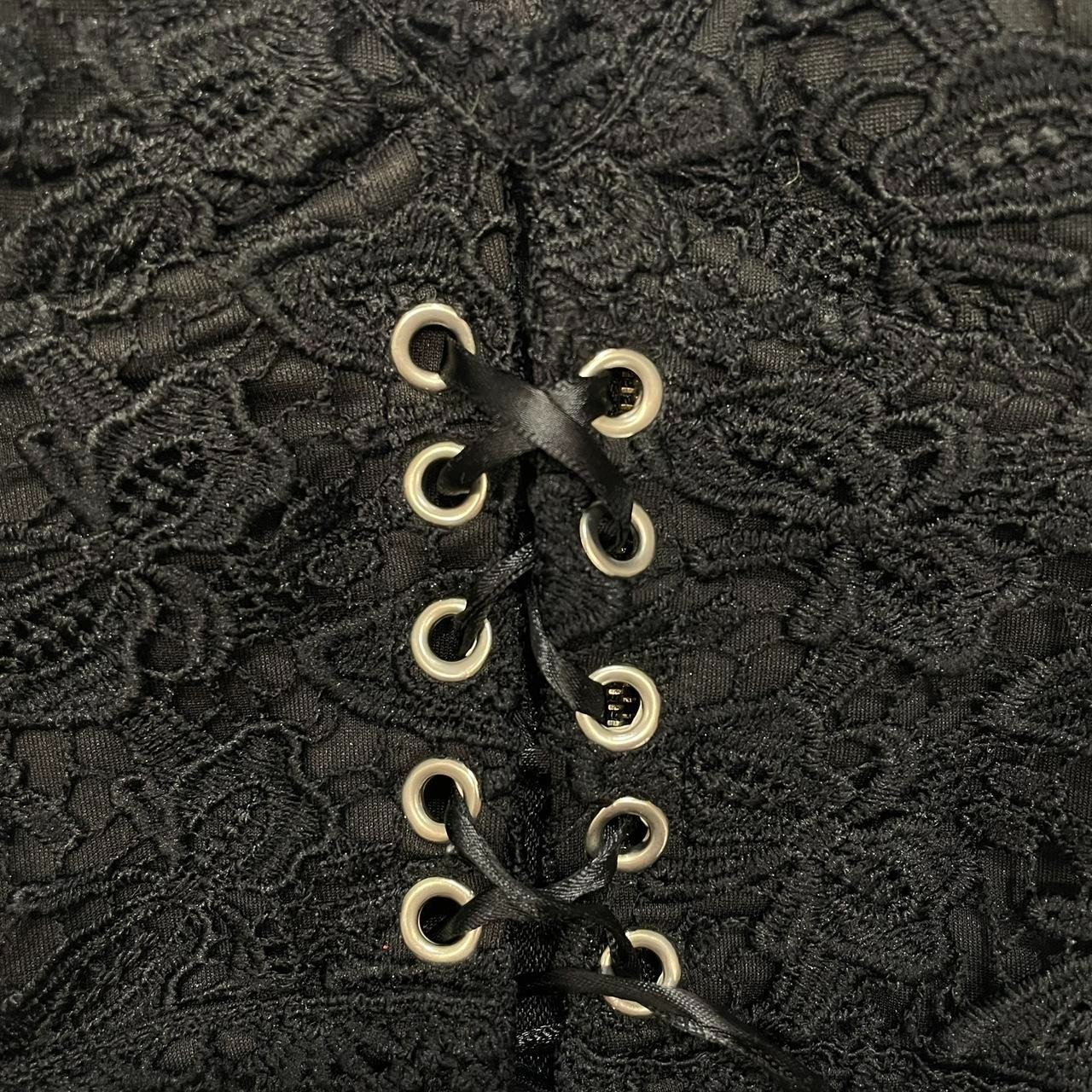 как выглядит Black Lace Corset Crop Top Size Small Lace-Up Front, Adjustable Straps, Y2K фото