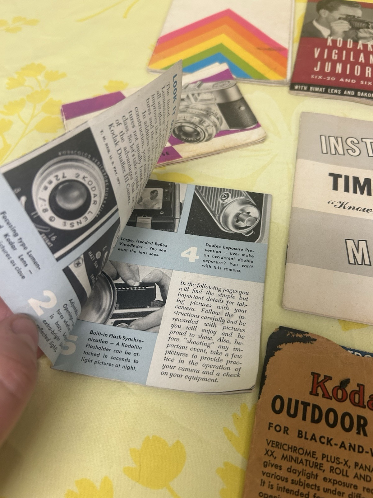 Lot of Vintage Camera Guides Manuals- Kodak Singer Brownie Spartus Leica Konica