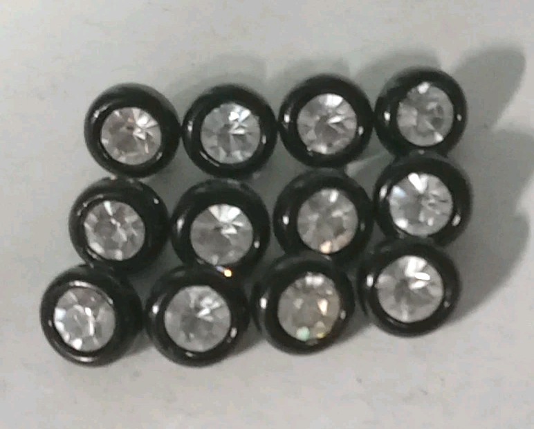 • Vintage Lot Of 12 Black Plastic Rhinestone Buttons "1/2 Inch