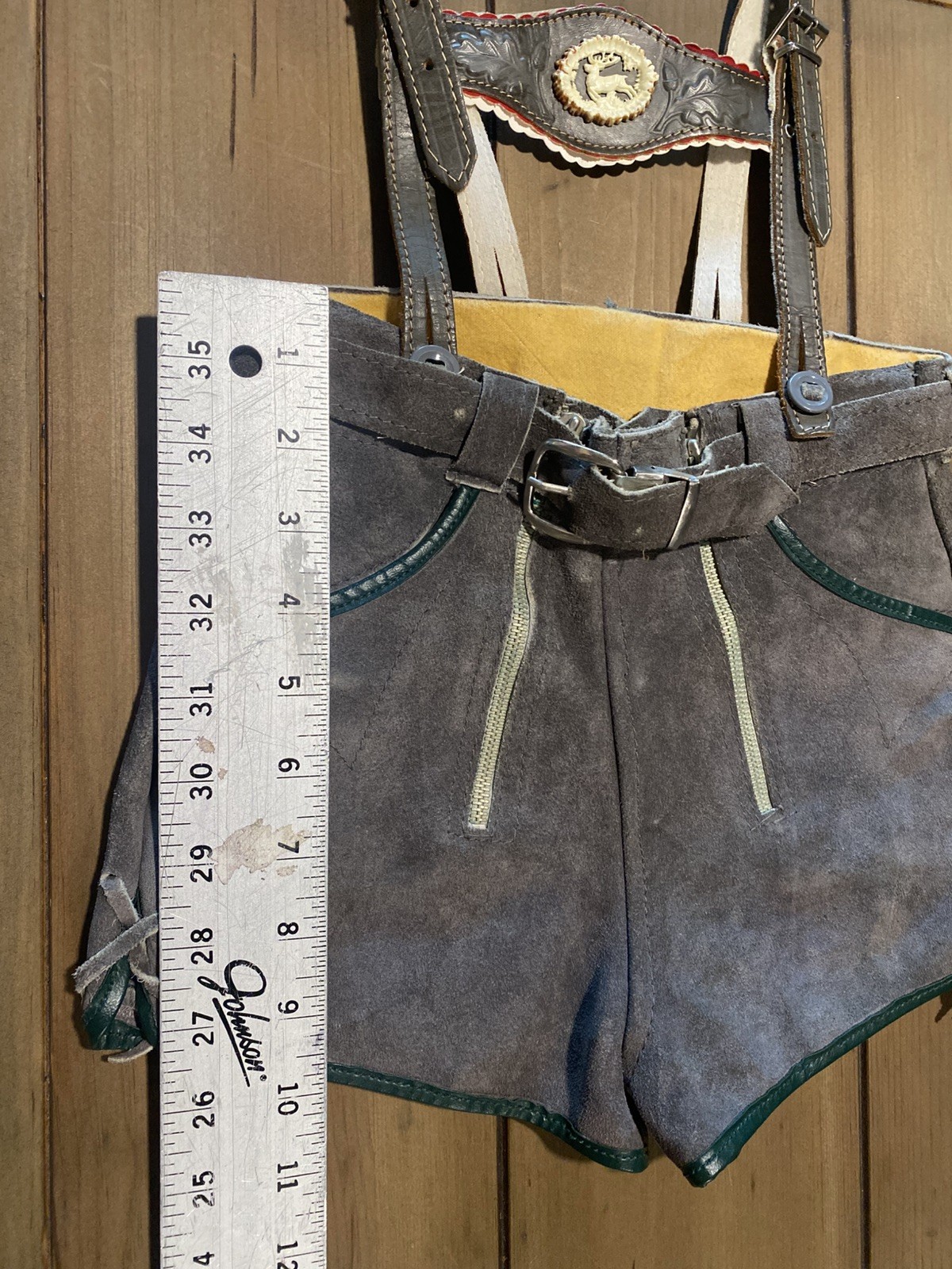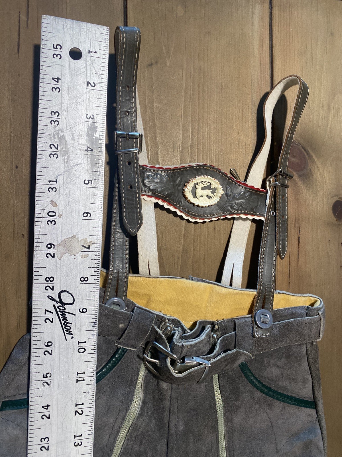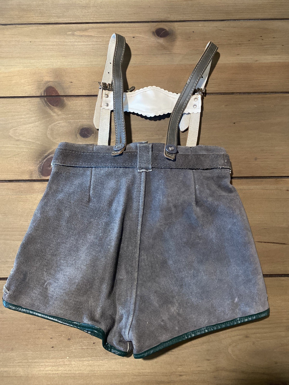 German Boys Size 3-4 Child READ Gray Lederhosen Suede Shorts Octoberfest