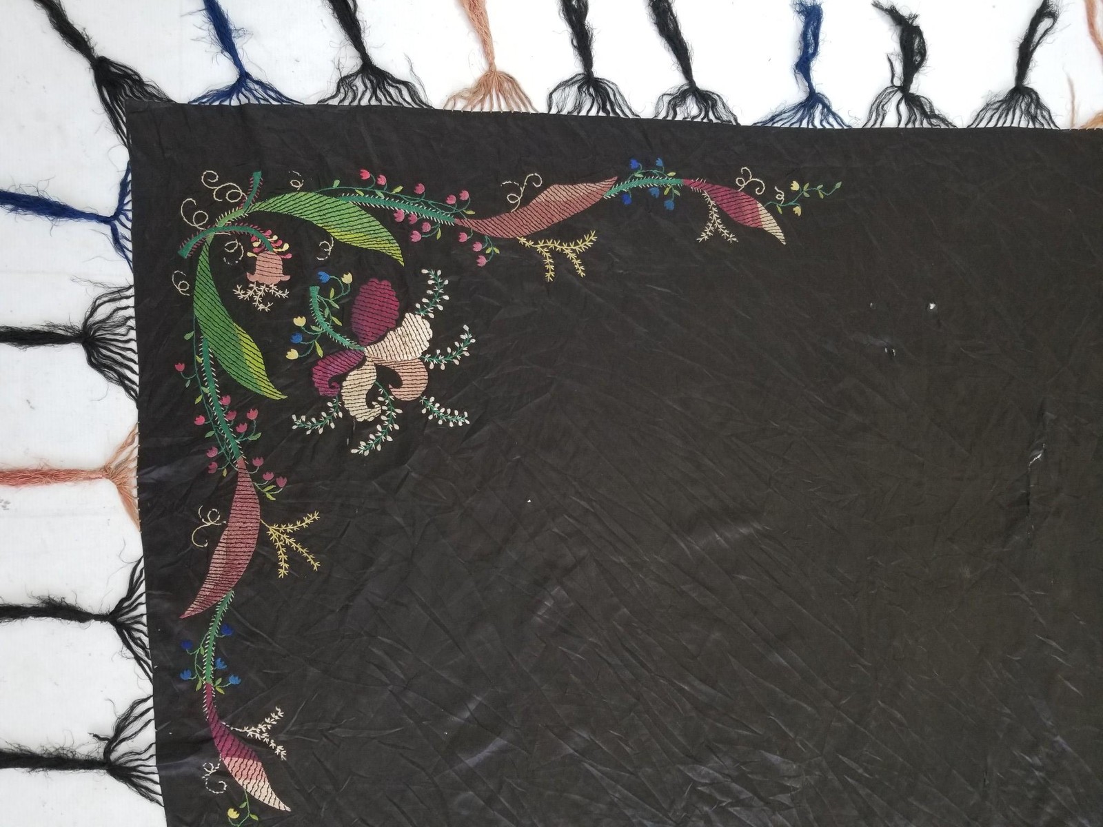как выглядит Vintage Traditional Embroidered Floral Shawl With Fringe 168x162cm фото