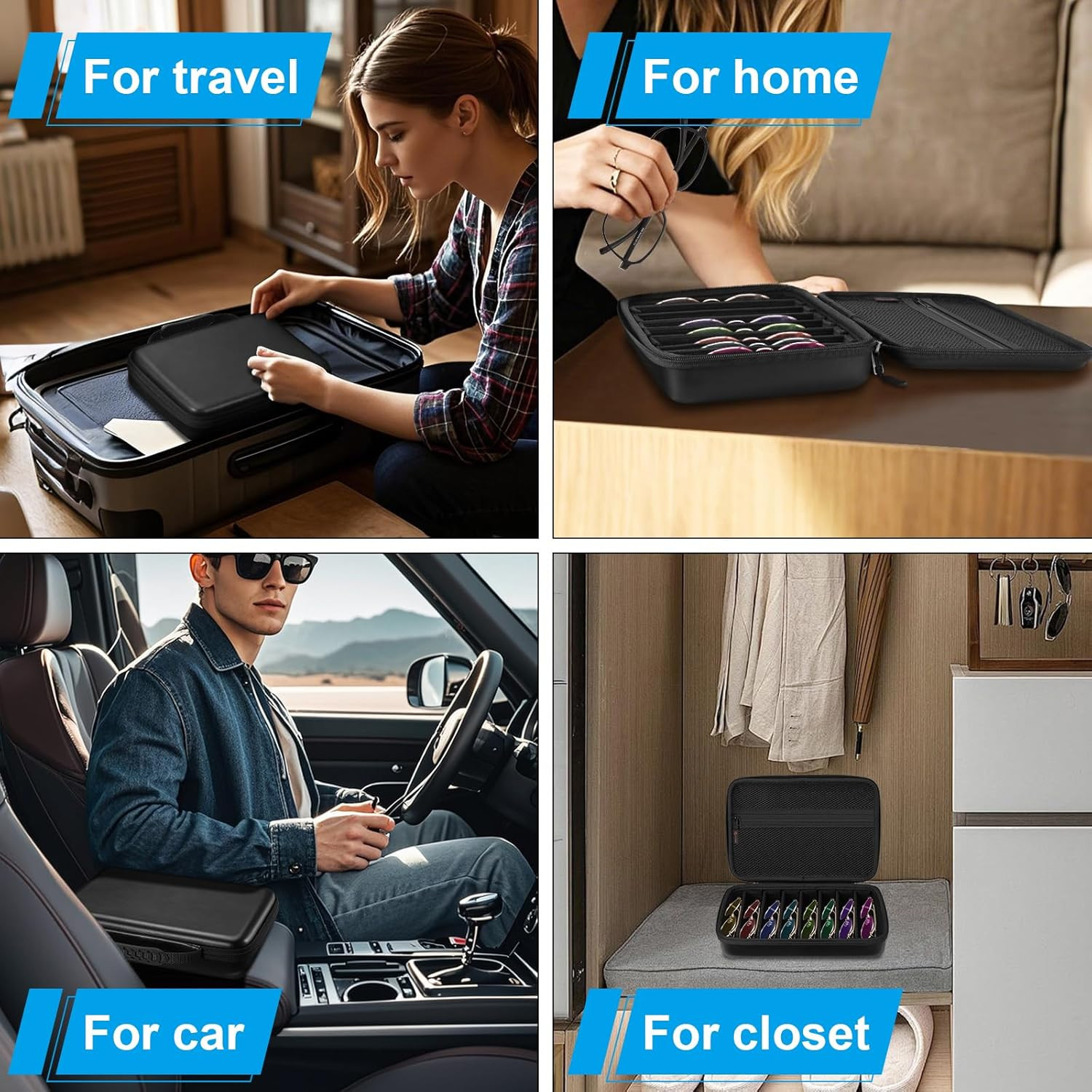Estuche organizador de gafas de sol de viaje con 8 compartimentos ajustables