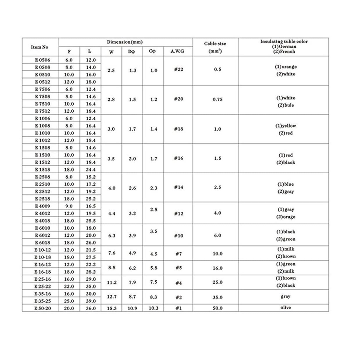Included Components: Wire Ferrule Connectors