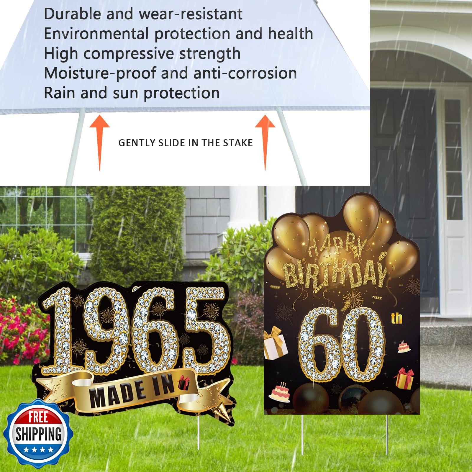 2pcs Birthday Yard Signs,60th Birthday Decorations for Men Woman Black Gold H
