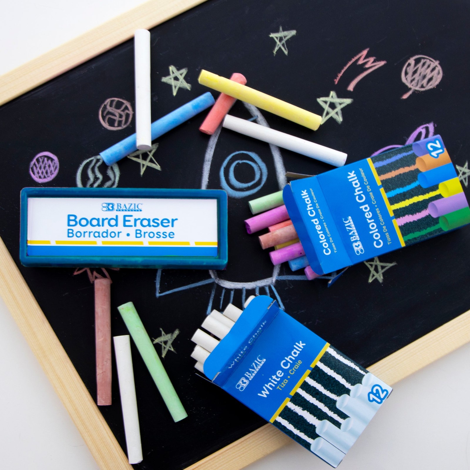 BAZIC 12 Color 12 White Chalk w/ Eraser Set, pack of 24