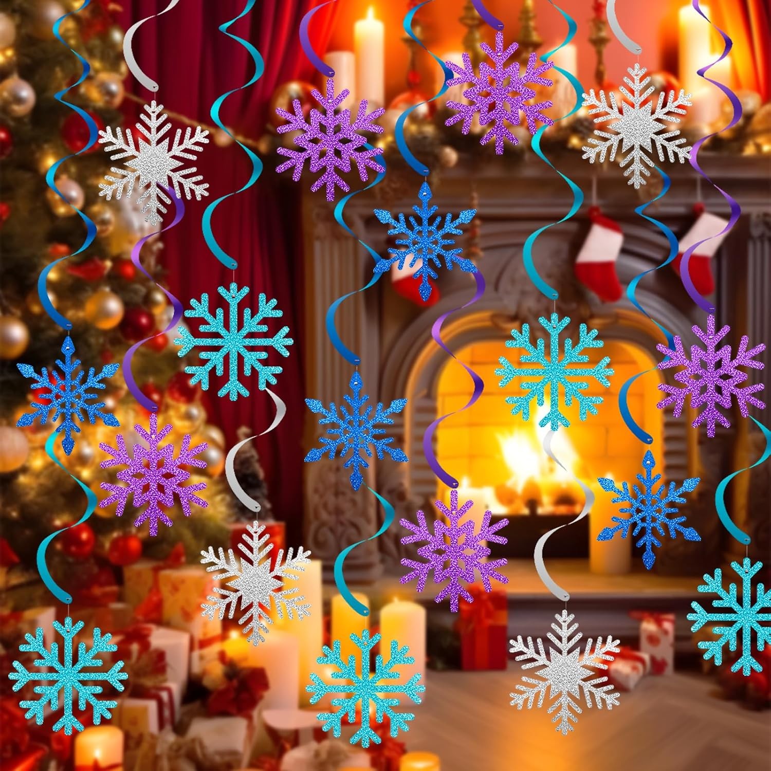как выглядит 20 Pcs Winter Snowflake Hanging Swirl Decorations - Hanging... фото