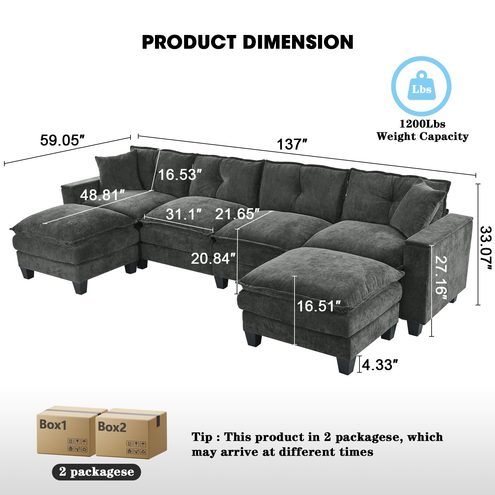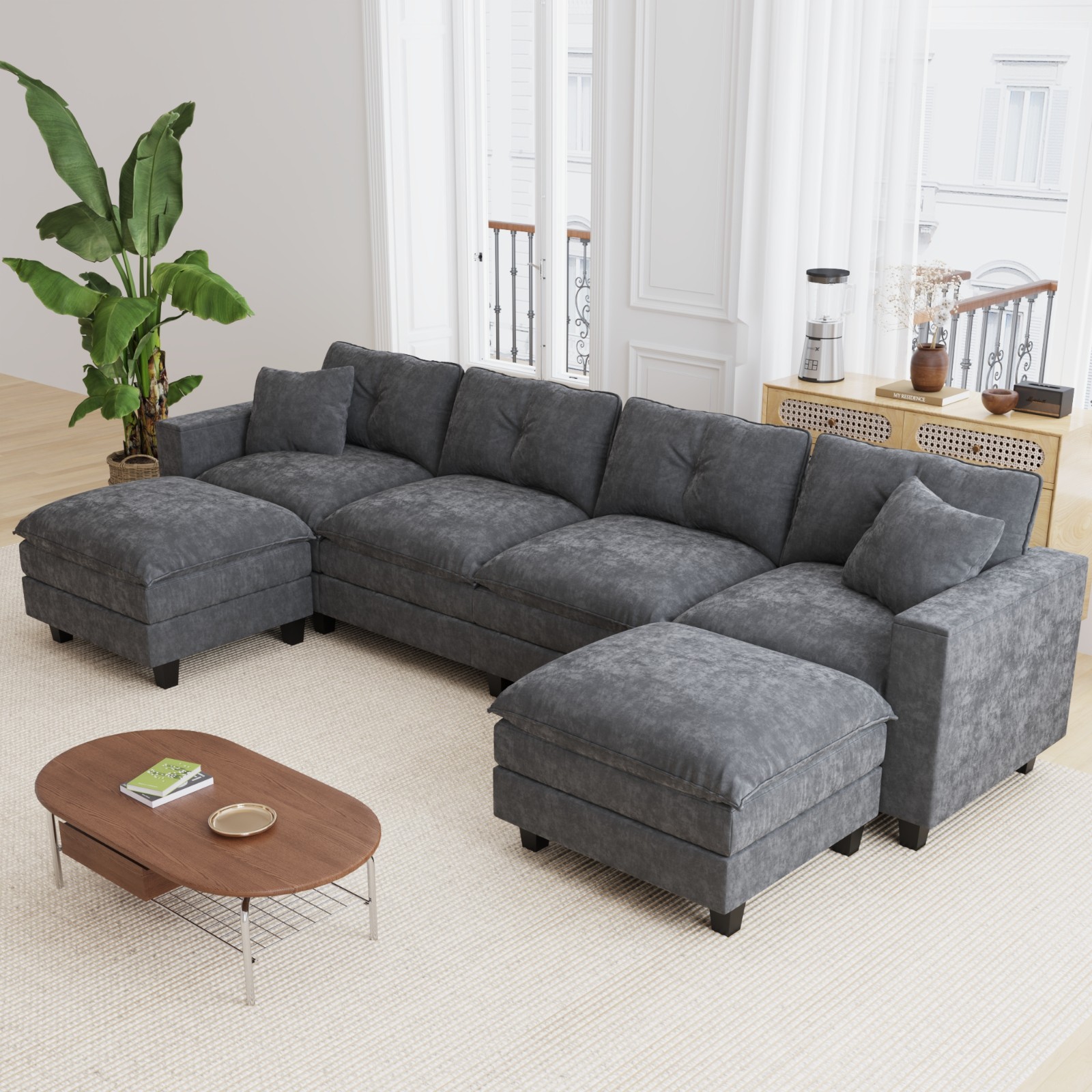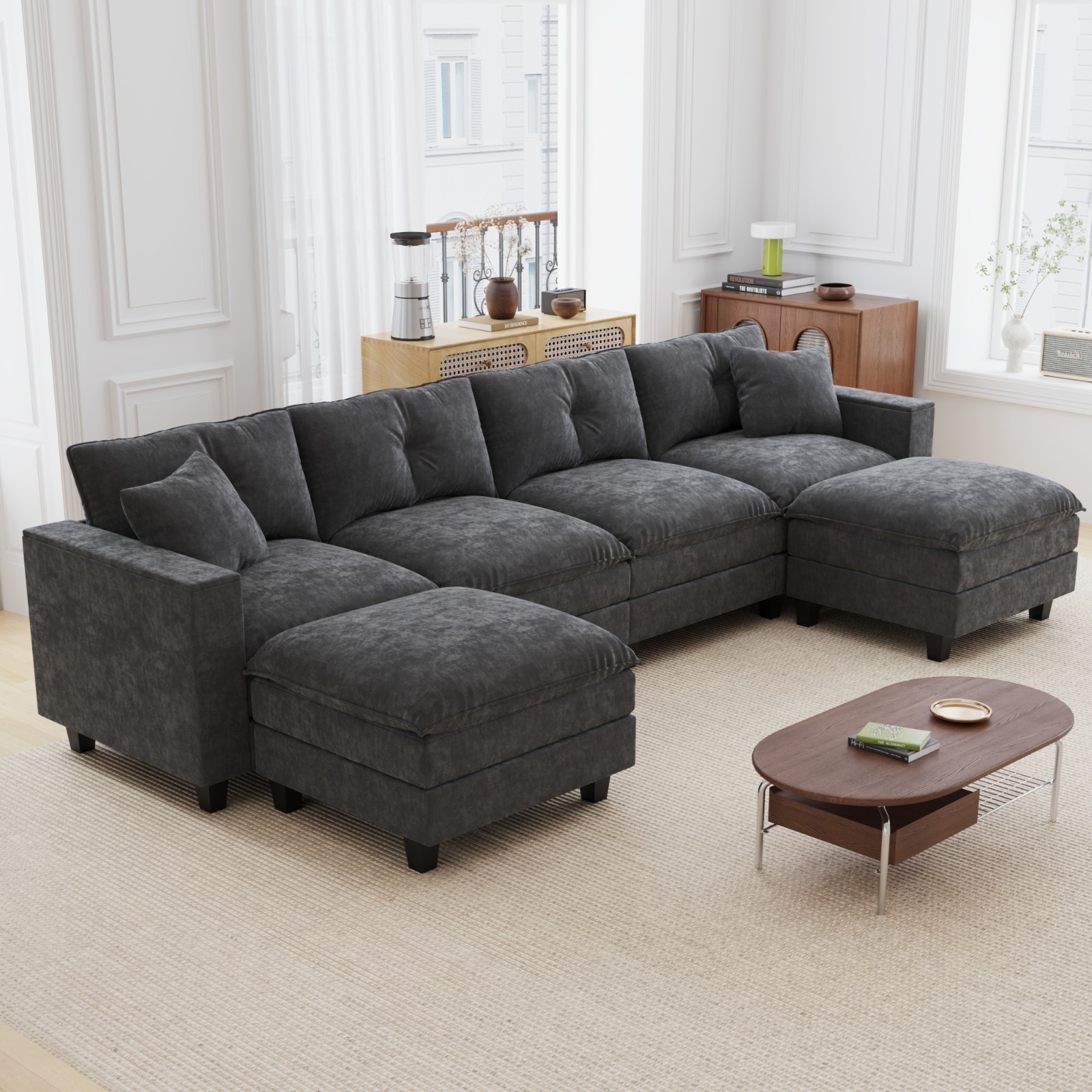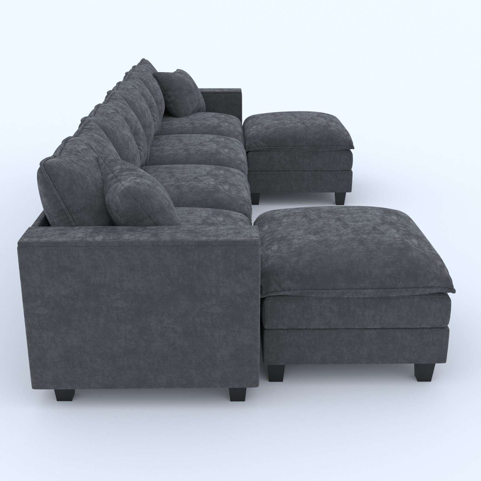 Modern U Shaped Sectional Sofa Sets 6 Seaters Chenille Upholstered Modular Couch