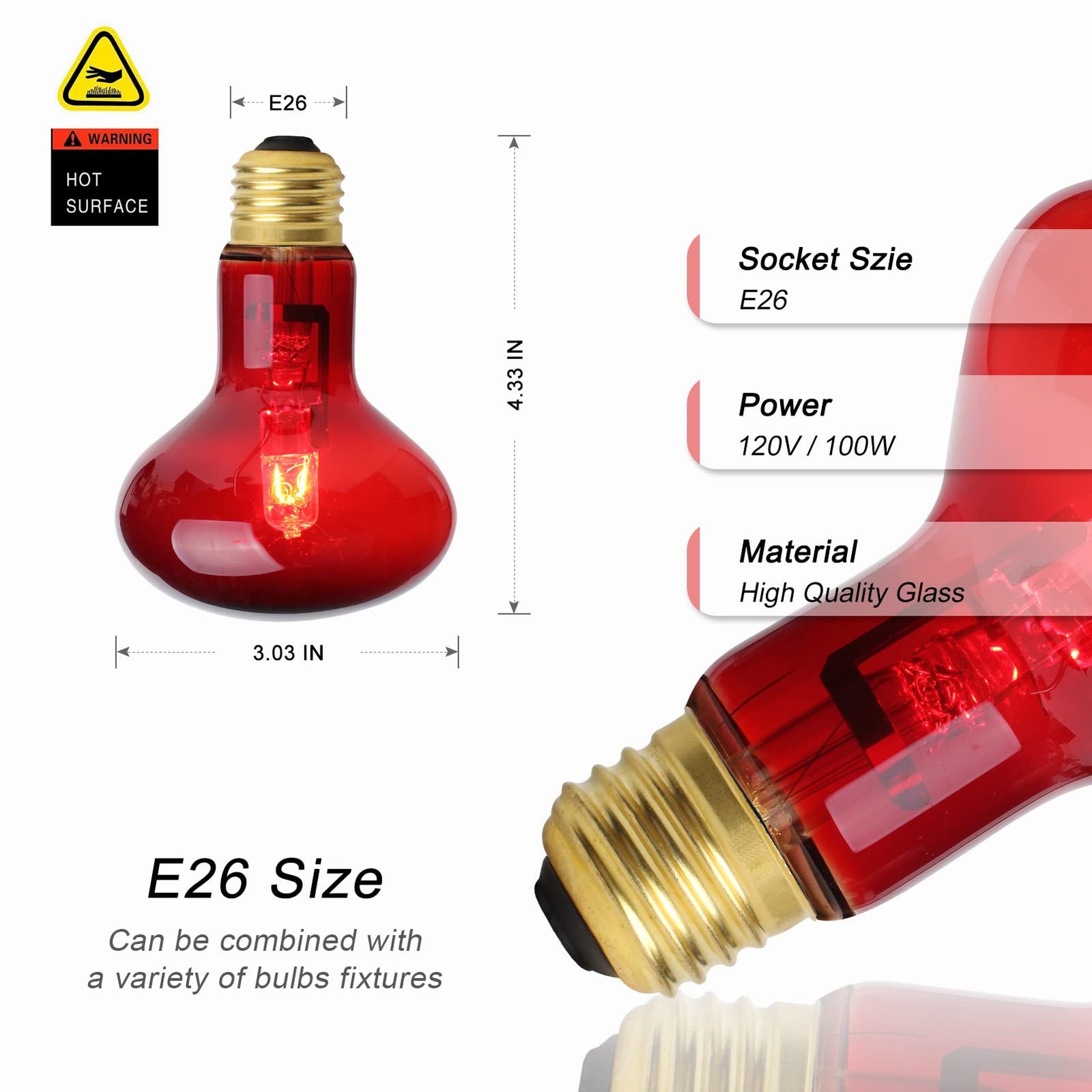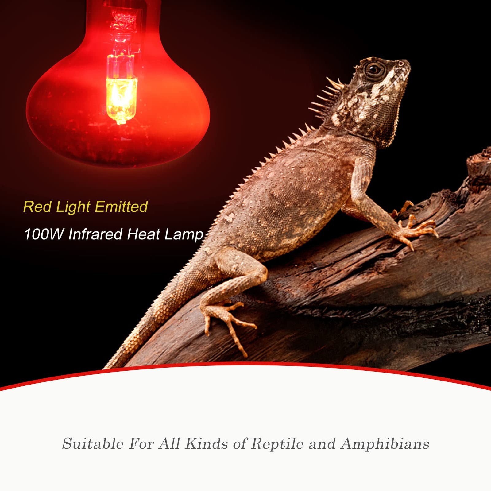 100W Infrared Reptile Heat Lamp Bulb, UVA Basking Spot Red Light Glass Heat B...