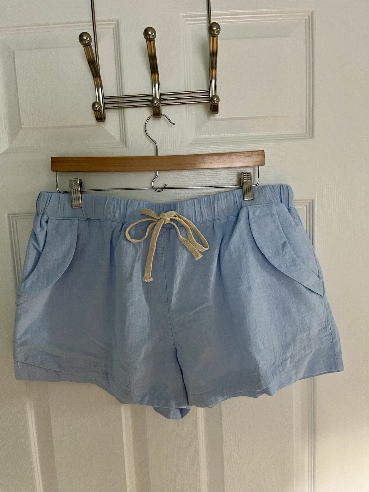 как выглядит Women s Light Blue Drawstring Shorts, 100 Cotton, 2XL, New In Bag фото