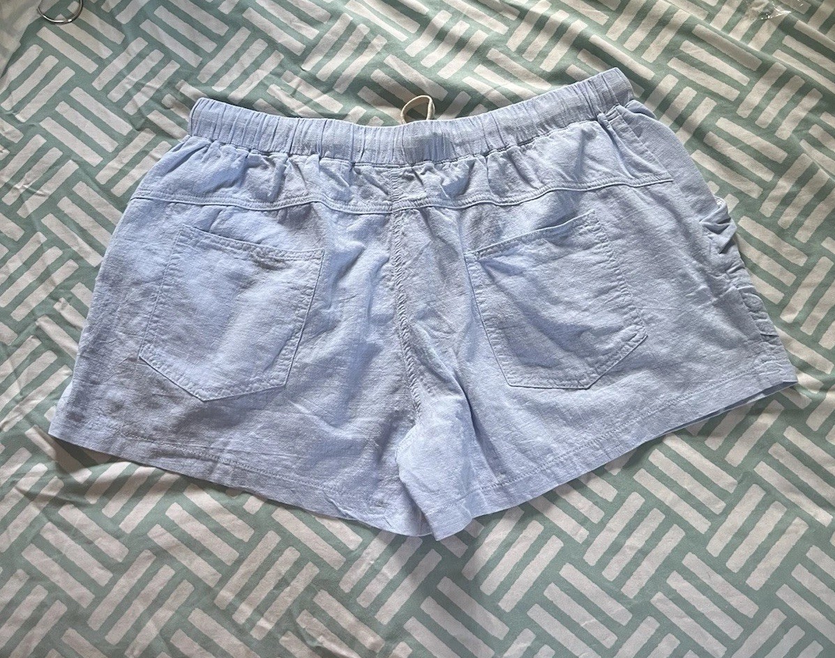 Women s Light Blue Drawstring Shorts, 100 Cotton, 2XL, New In Bag