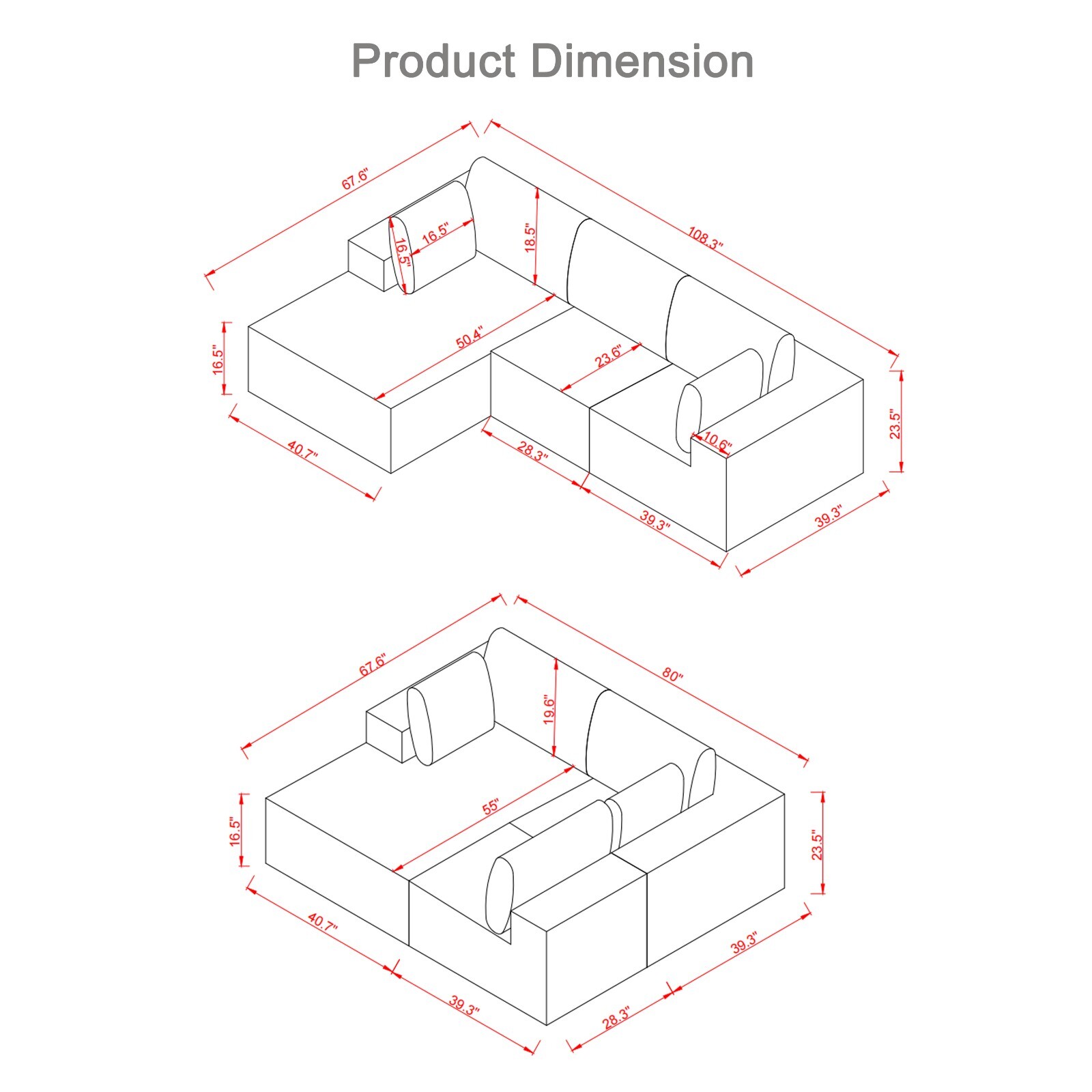 Modern L Shape Sectional Sofa Corduroy Upholstered Convertible Modular Couch