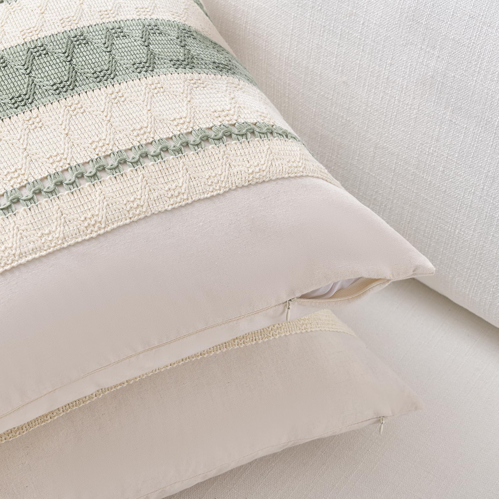 Set of 2 Sage Green Boho Decorative Throw Pillow Covers 16x16 Inch for Living...