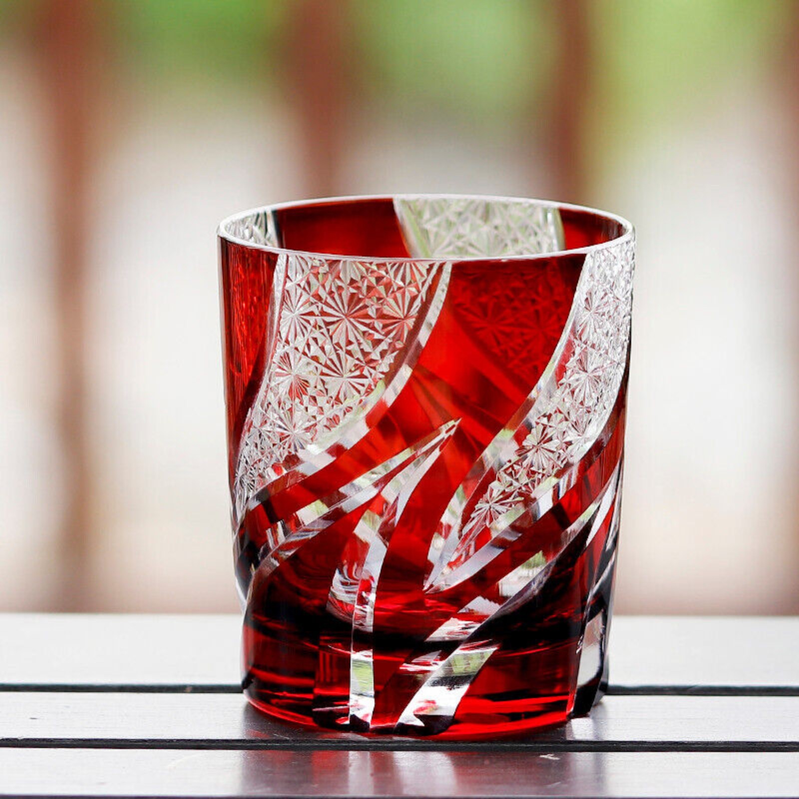 Whiskey Glasses Tumbler Japanese Style Edo Kiriko Glass Hand Cut To Clear 9oz