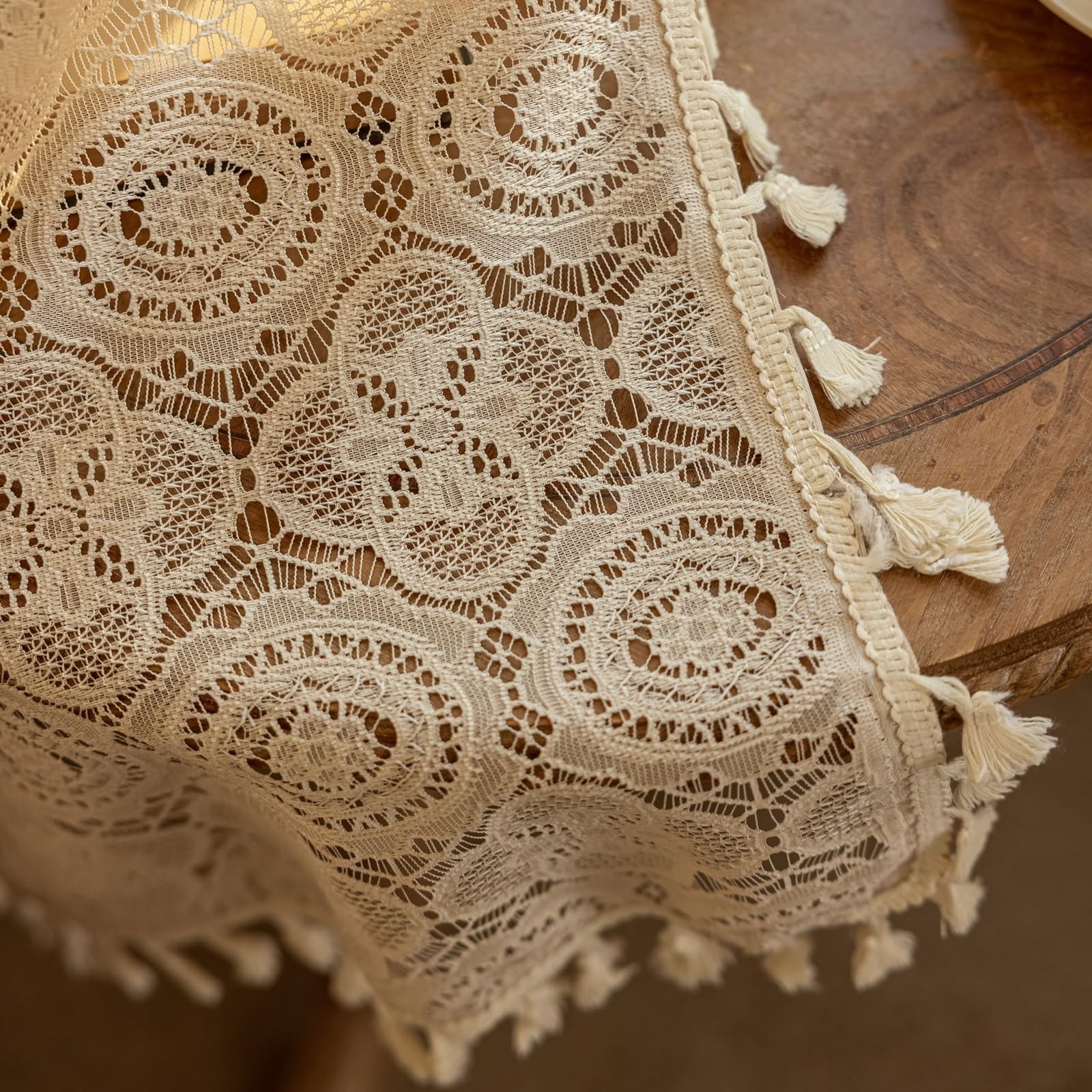 Boho Lace Curtains 84 Inches Long 2 Panels Retro 59W x 84L Pack of 2 Beige