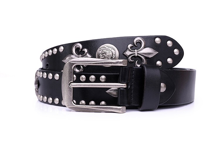 Skull Studded Rivet Metal Punk Rock Belts Waistband Men Leather Buckle Belts