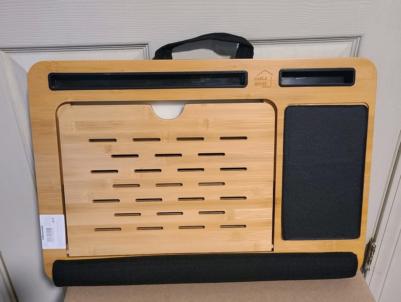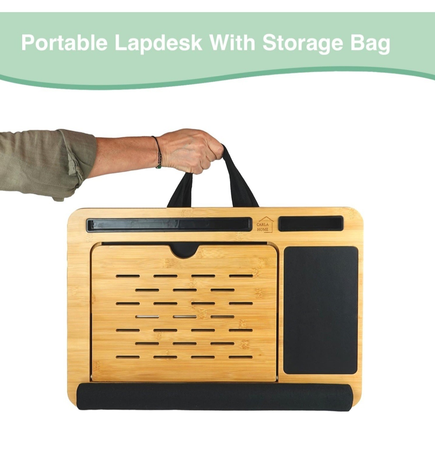 как выглядит CARLA HOME Bamboo Laptop Lap Desk with Cushion, Angle Adjustable Laptop Computer фото