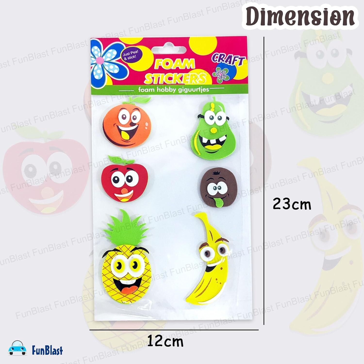 Self-Adhesive Puffy Foam 3D Stickers for Kids - Fruits Theme for Art and Craft