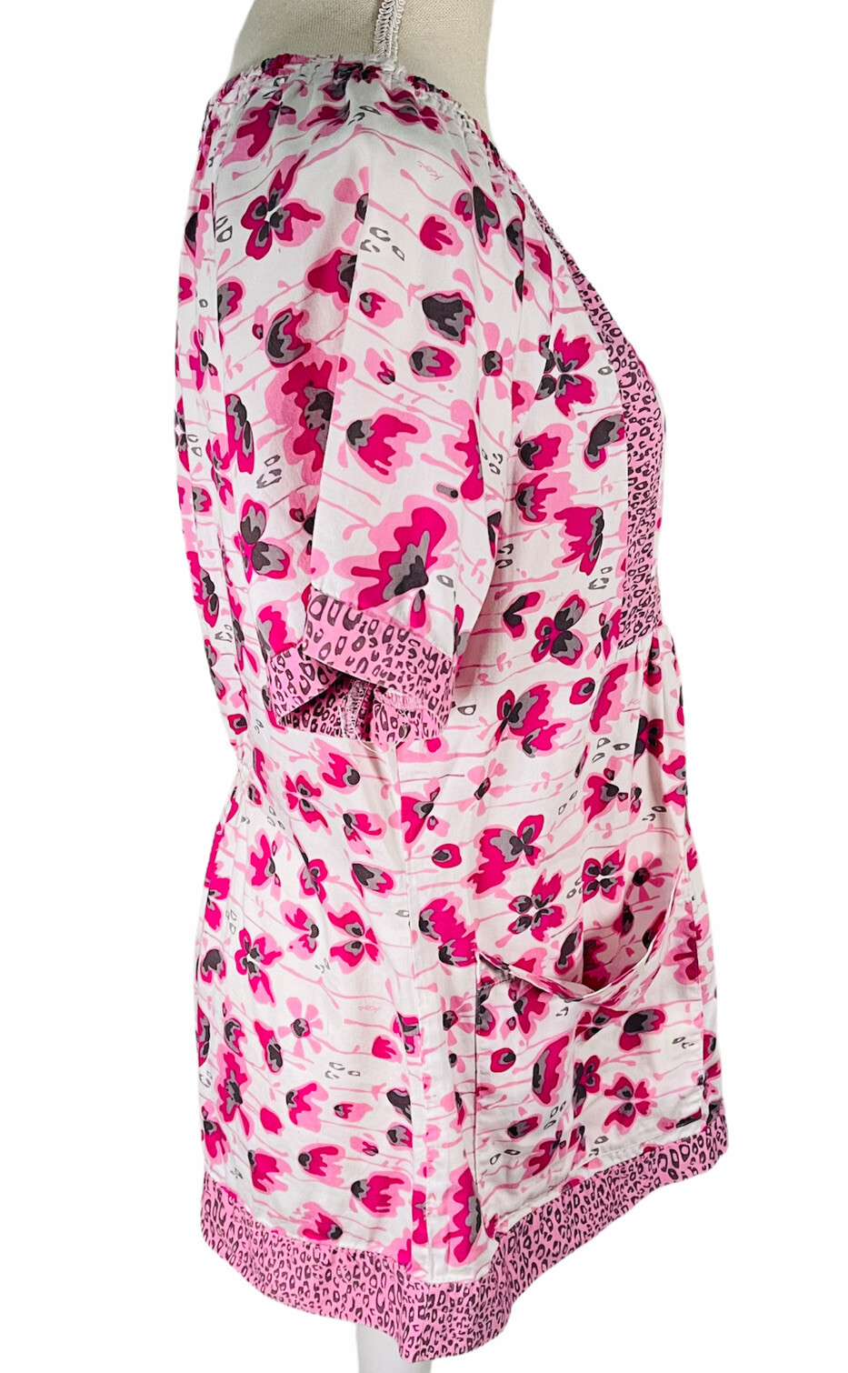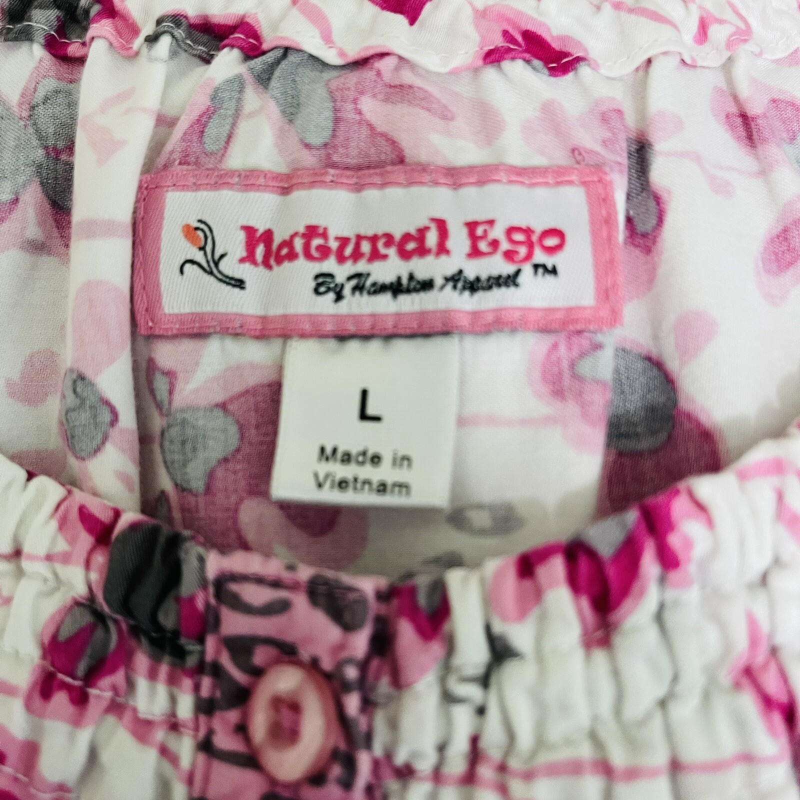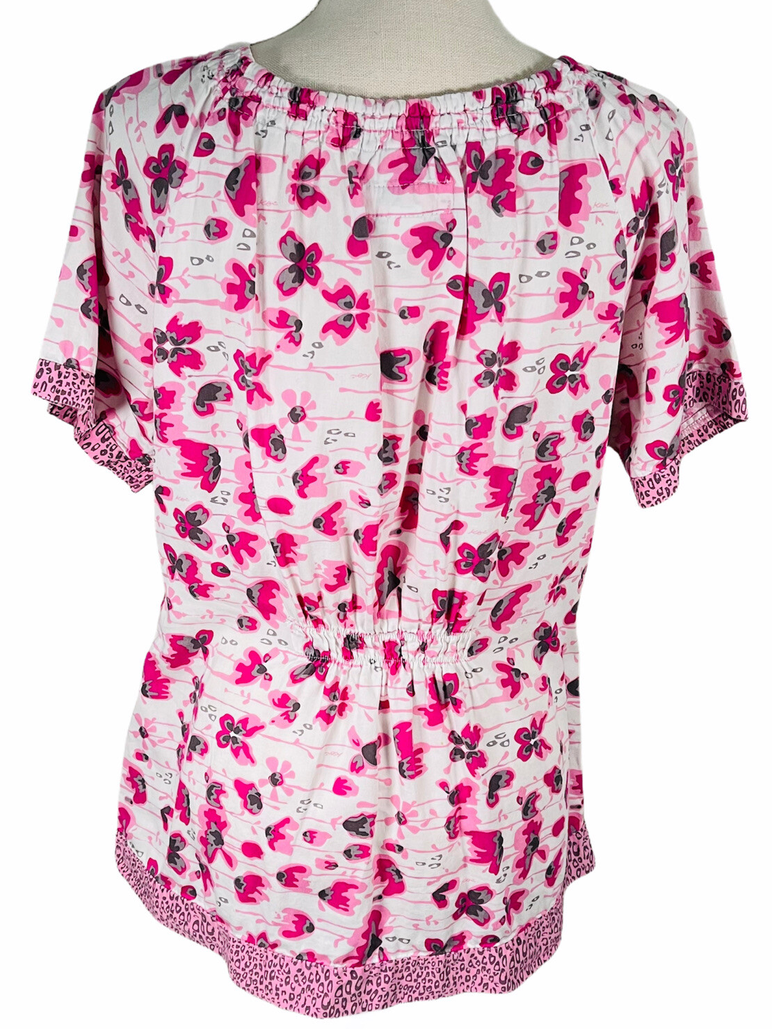 Natural Ego Scrub Top Womens Size Large Pink Animal Print Short Sleeve Pockets