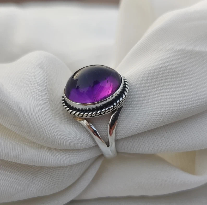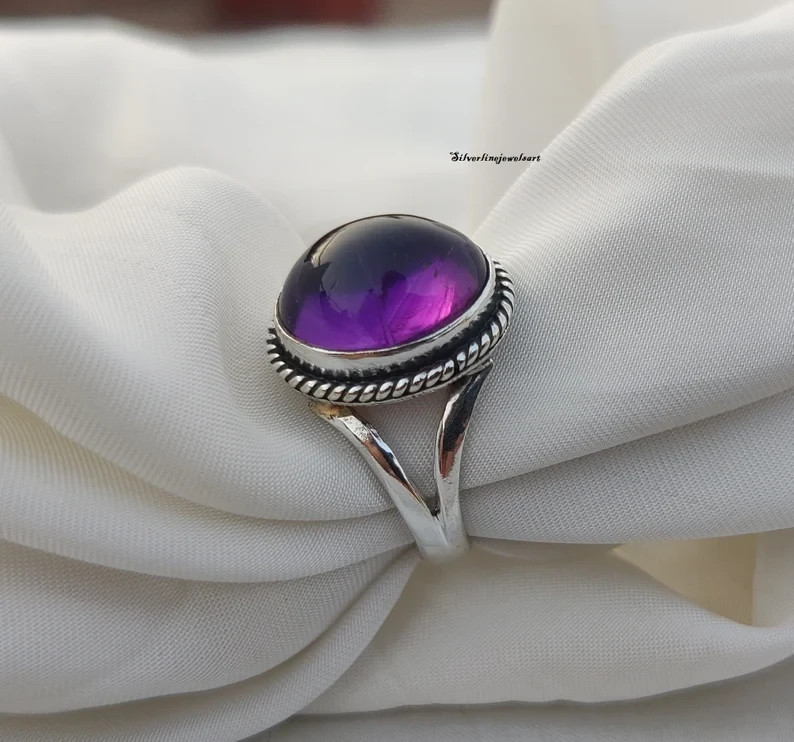 как выглядит Amethyst Ring, 925 Sterling Silver Ring, Handmade Ring, Split Wide Band All Size фото