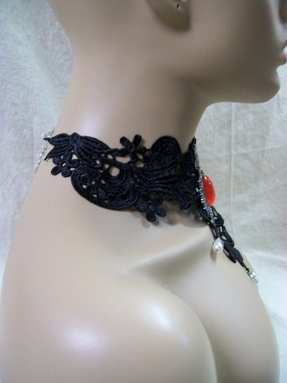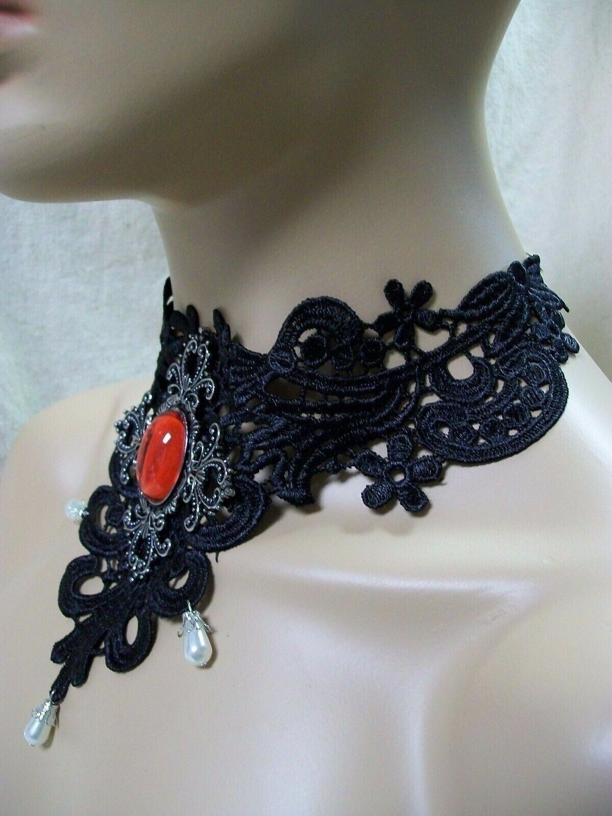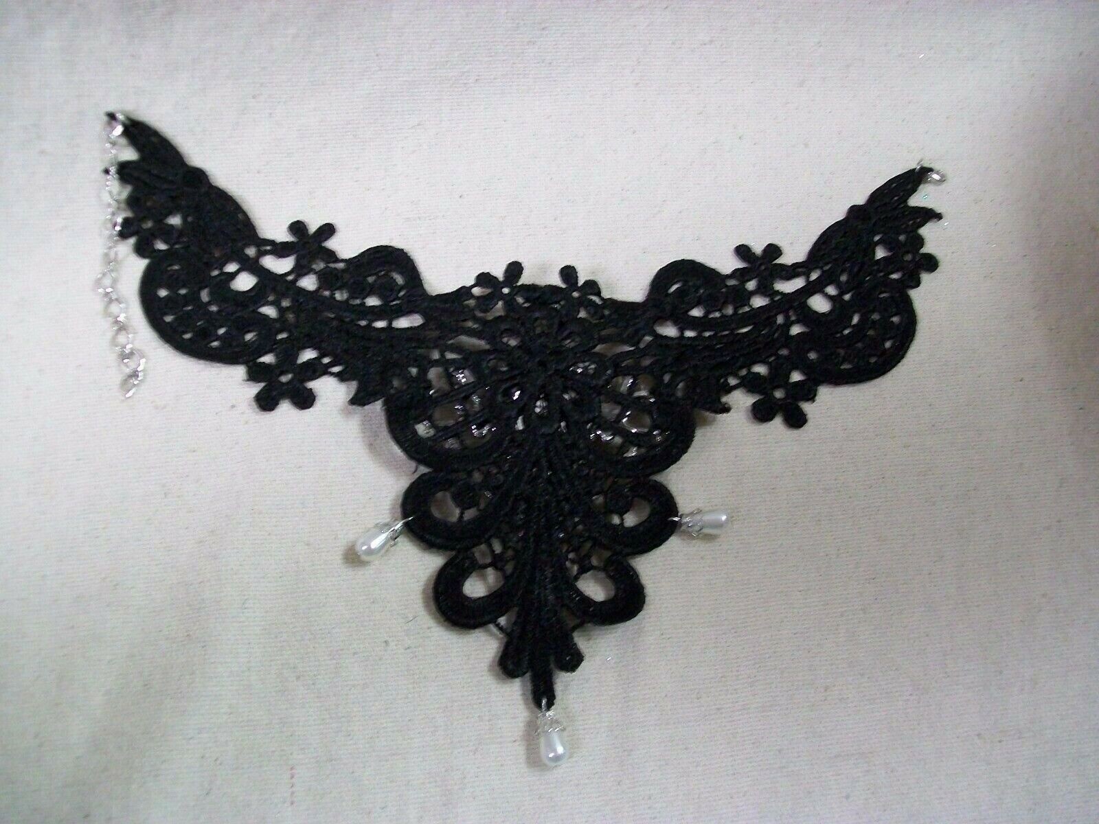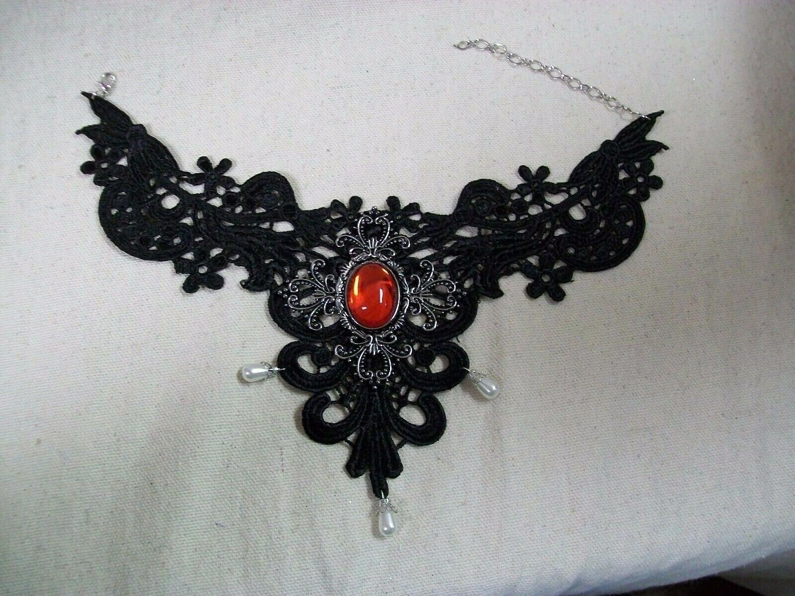 Gothic Black Lace Necklace Medallion Choker Collar Victorian Steampunk Madame