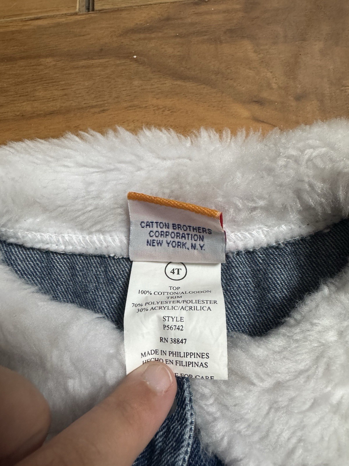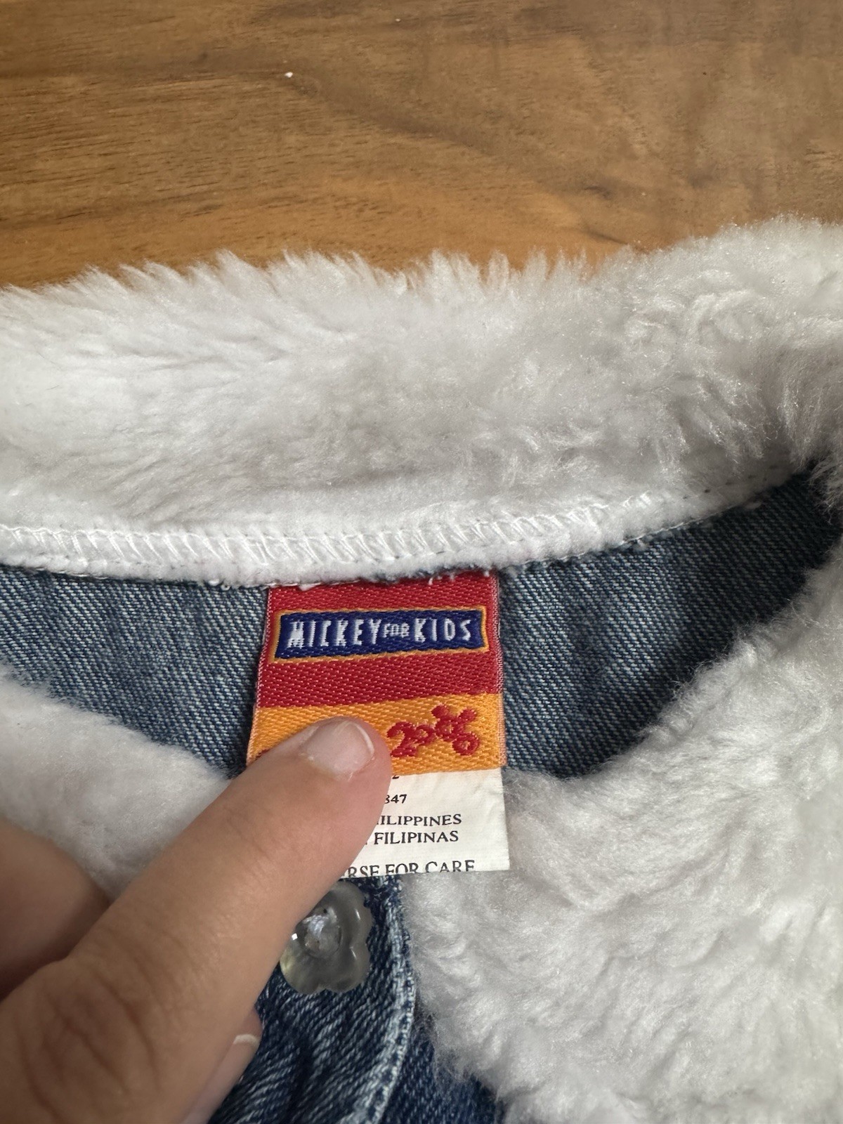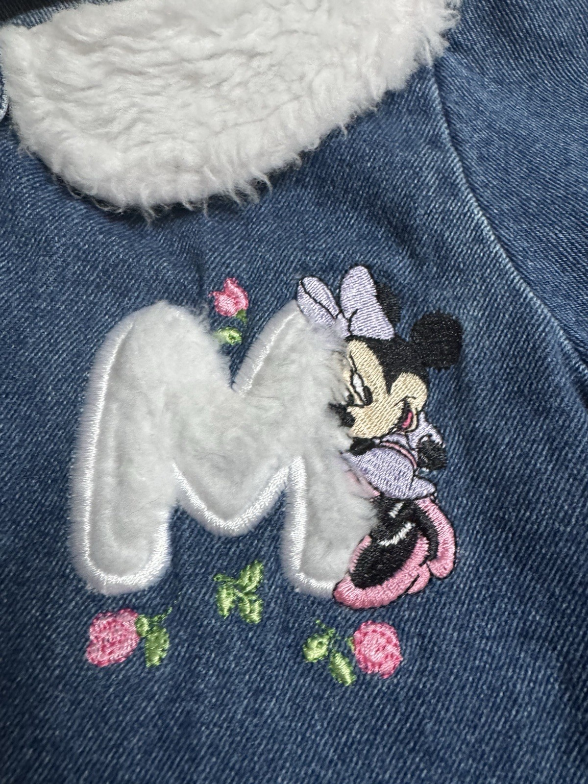 Vintage Minnie Mouse Toddler Girls Denim Jacket Fur Collar Size 4T Flower Button