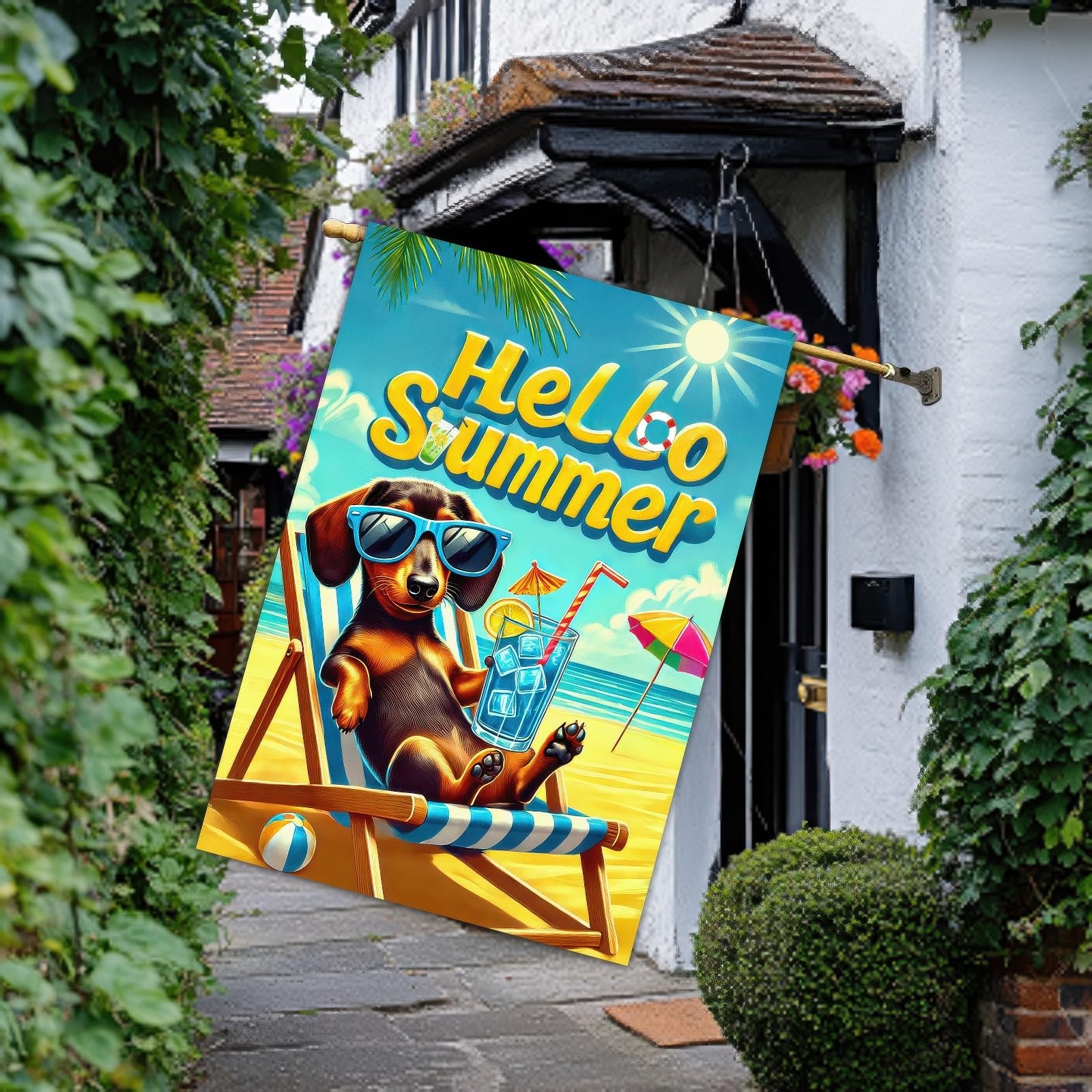 Dachshund Summer Garden Flag 28 x 40 Inch Double Sided House Flag with Beach ...