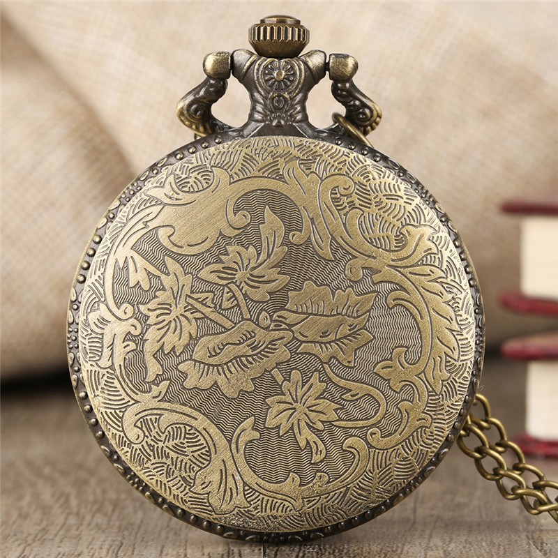 Antique Evil Pattern Unisex Quartz Pocket Watch Necklace Chain Arabic Number