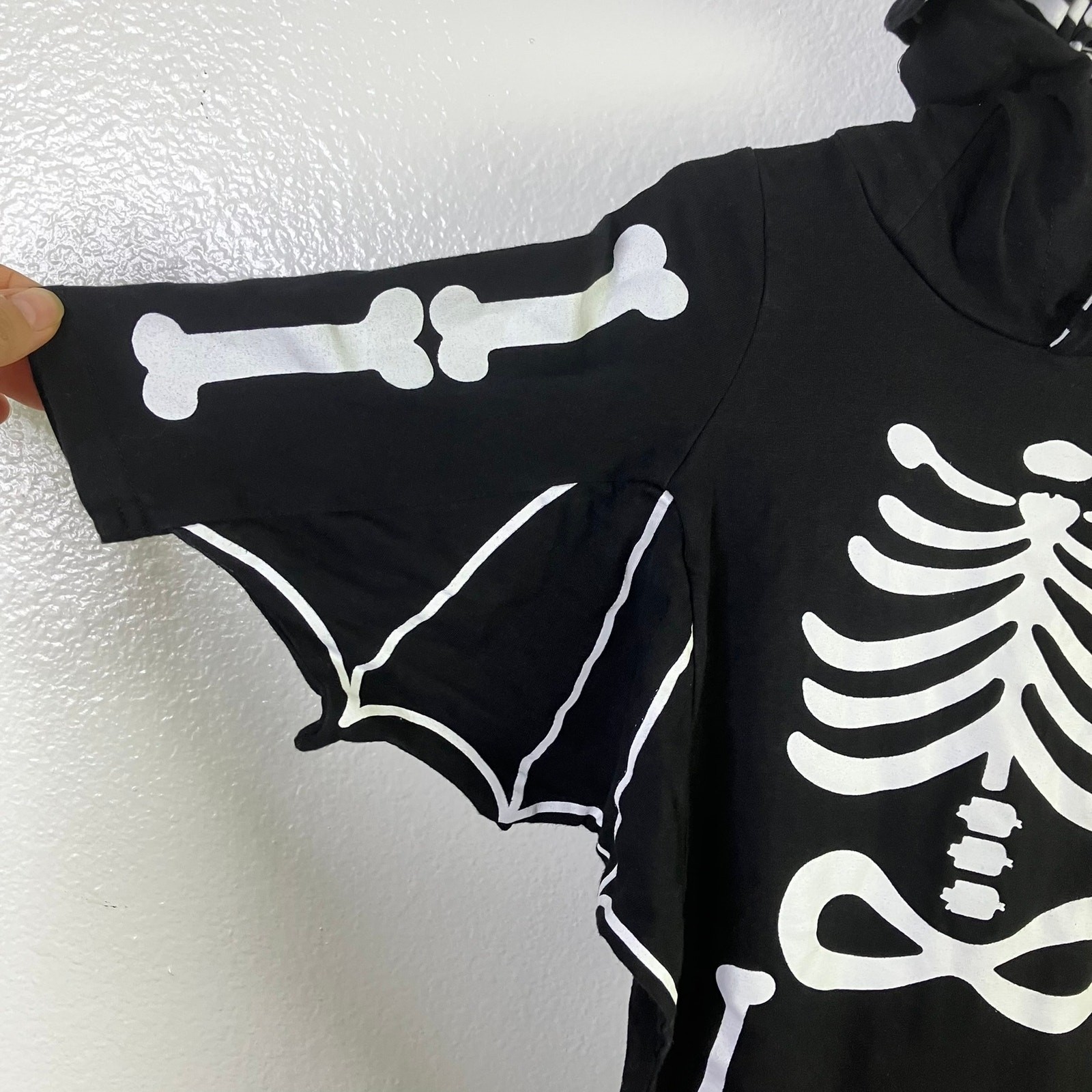 как выглядит Halloween Bat Skeleton Romper Size 9-12m Hooded Costume Spooky Cute фото