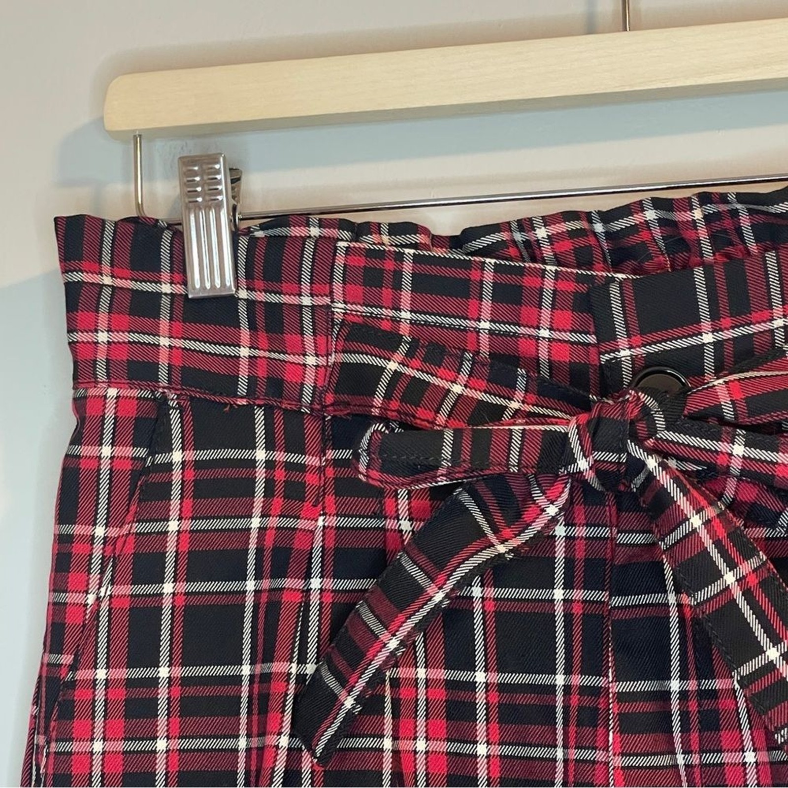 Almost Famous Red and Black Plaid Paper bag Pants