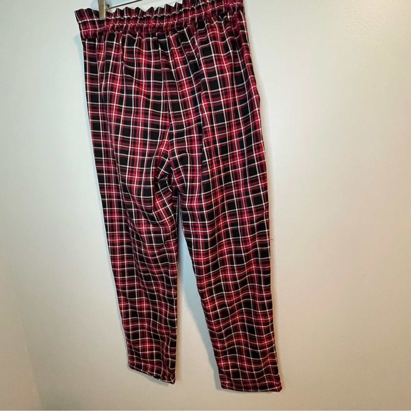 как выглядит Almost Famous Red and Black Plaid Paper bag Pants фото