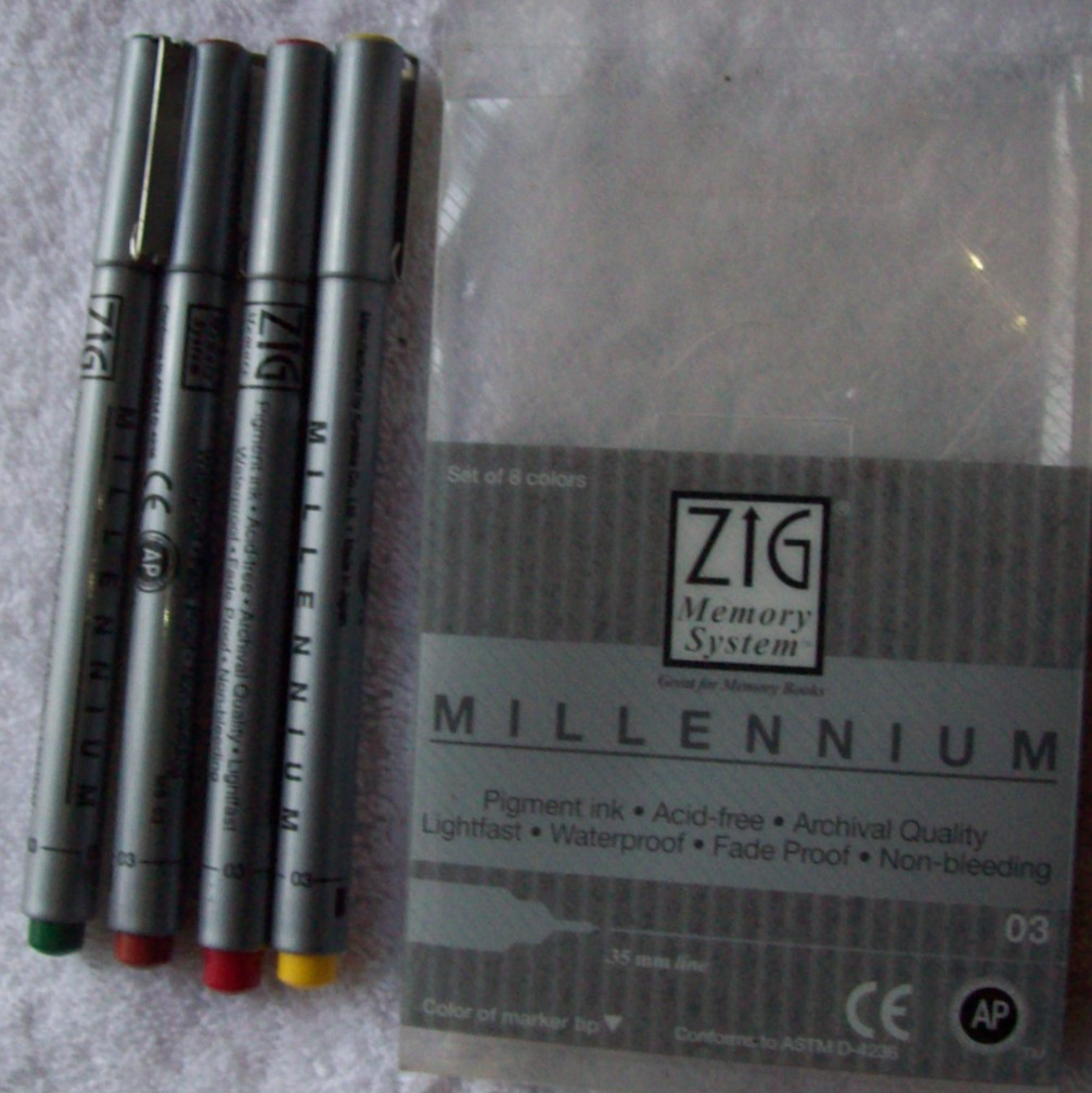 4 Zig Memory System Millennium Markers .35mm Fine Multi-colors Pigment ink
