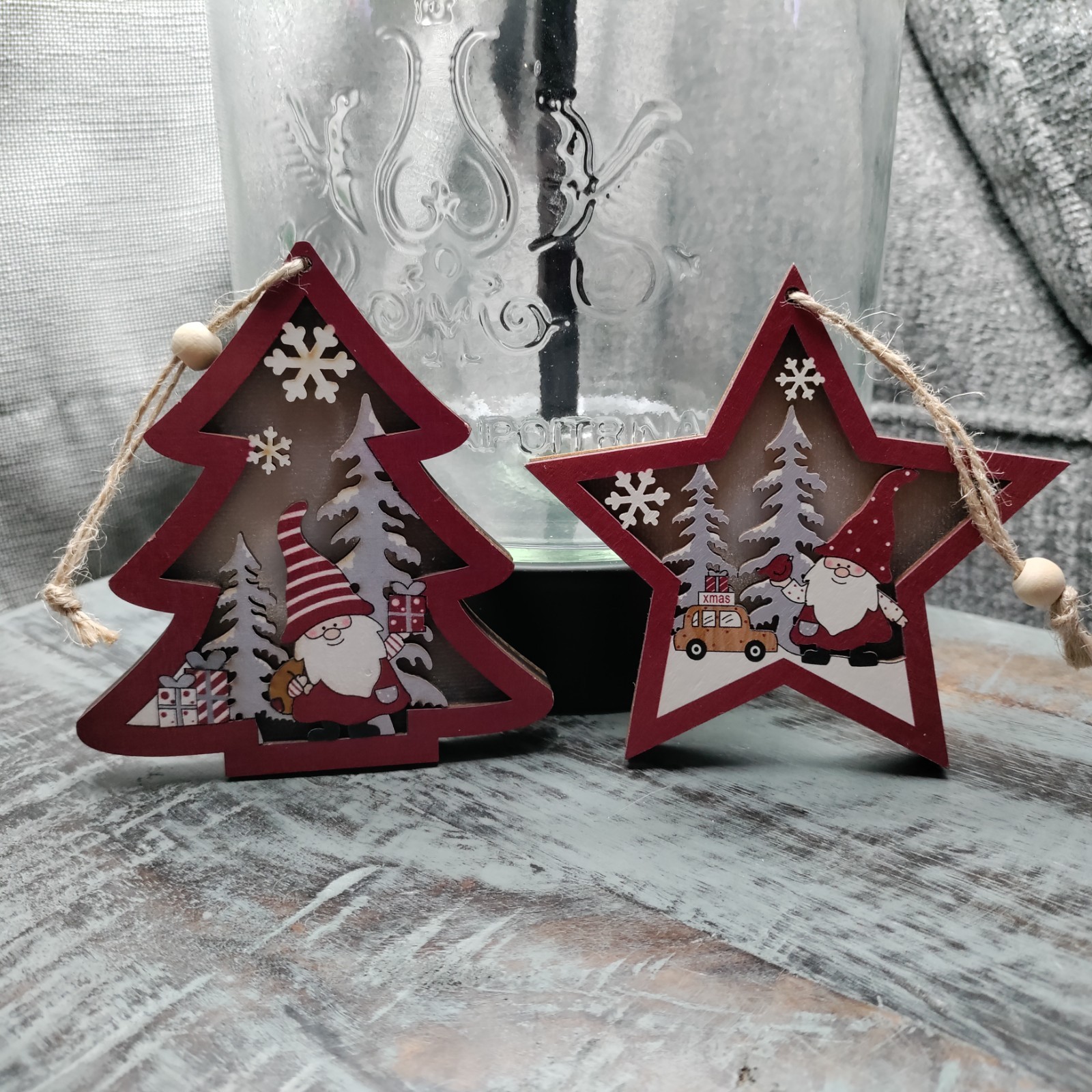 Santa Gnome's Theme Christmas Tree Ornaments - Set of 2 CHRISTMAS IN JULY