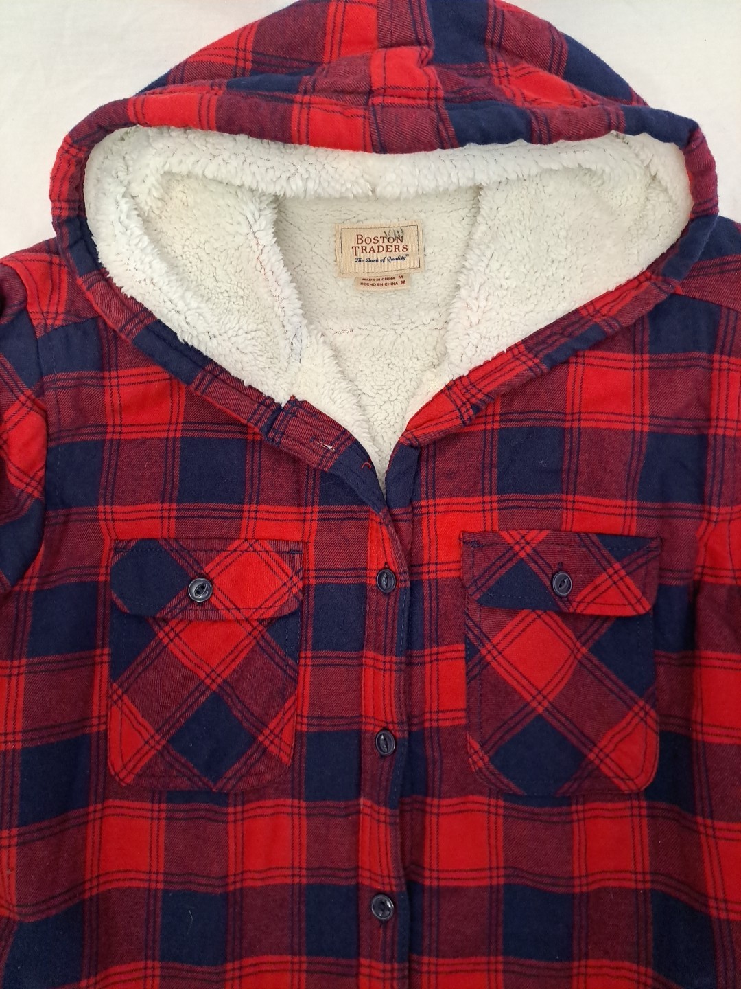 Boston Traders Sherpa-lined Long Sleeve Flannel Hoodie Shacket M Red BLK Unisex
