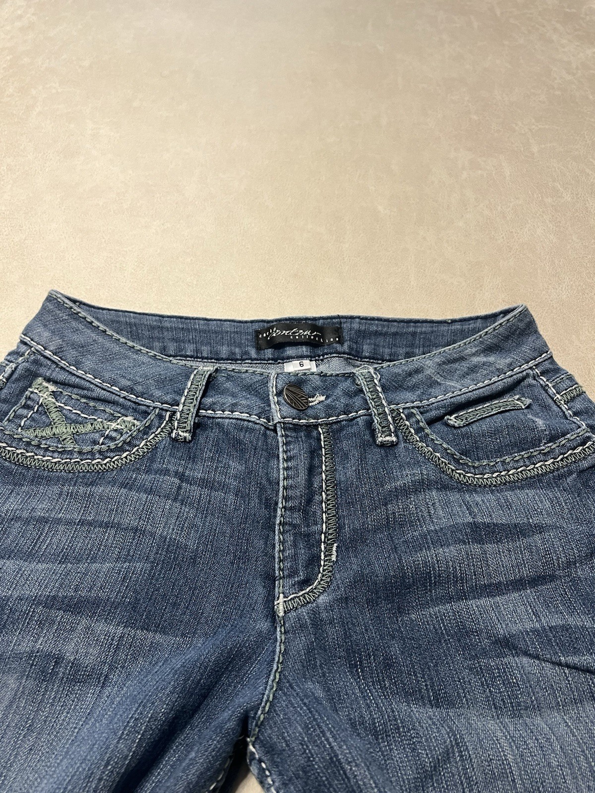 как выглядит Cache Contour Collection Slghtly Distressed Bootcut Jeans w/ Embroidery. Size 6 фото