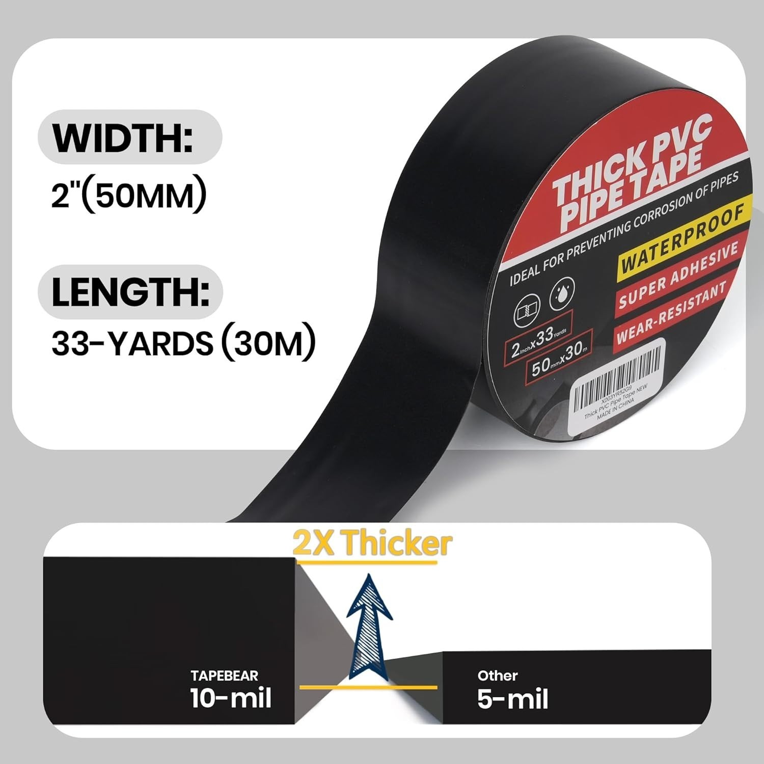 Corrosion Protection Pipe Tape 10mil Pipe Wrap Tape for Drain Pipe 2Inch x 33Yd