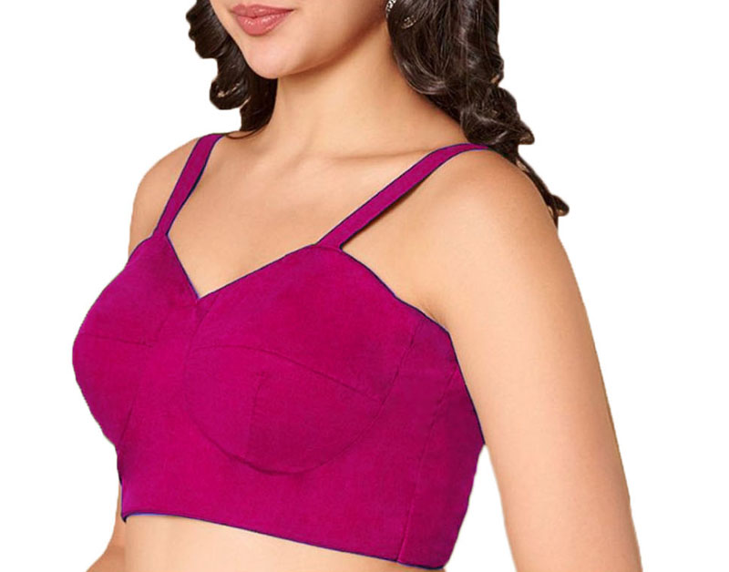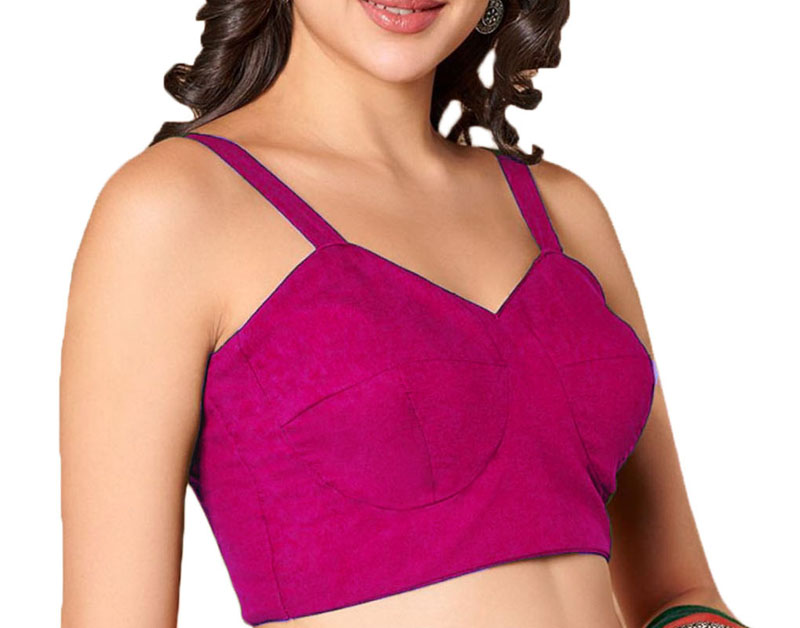 Way2Like Women's Dupion Silk Saree Blouse Sleeveless V Neck Readymade Choli