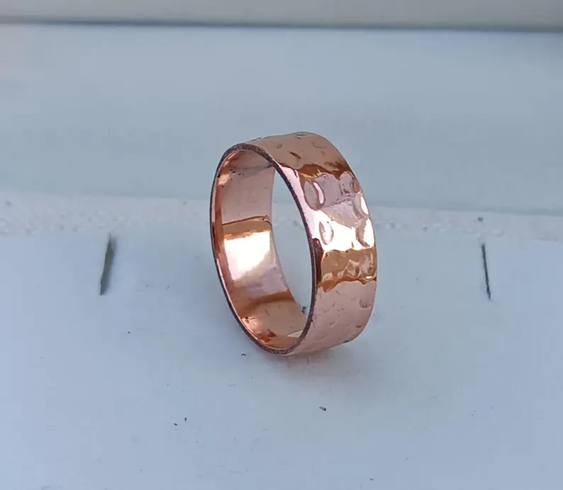 как выглядит Handmade Hammered Copper Wide Band Ring: Solid Copper Jewelry , All Size фото