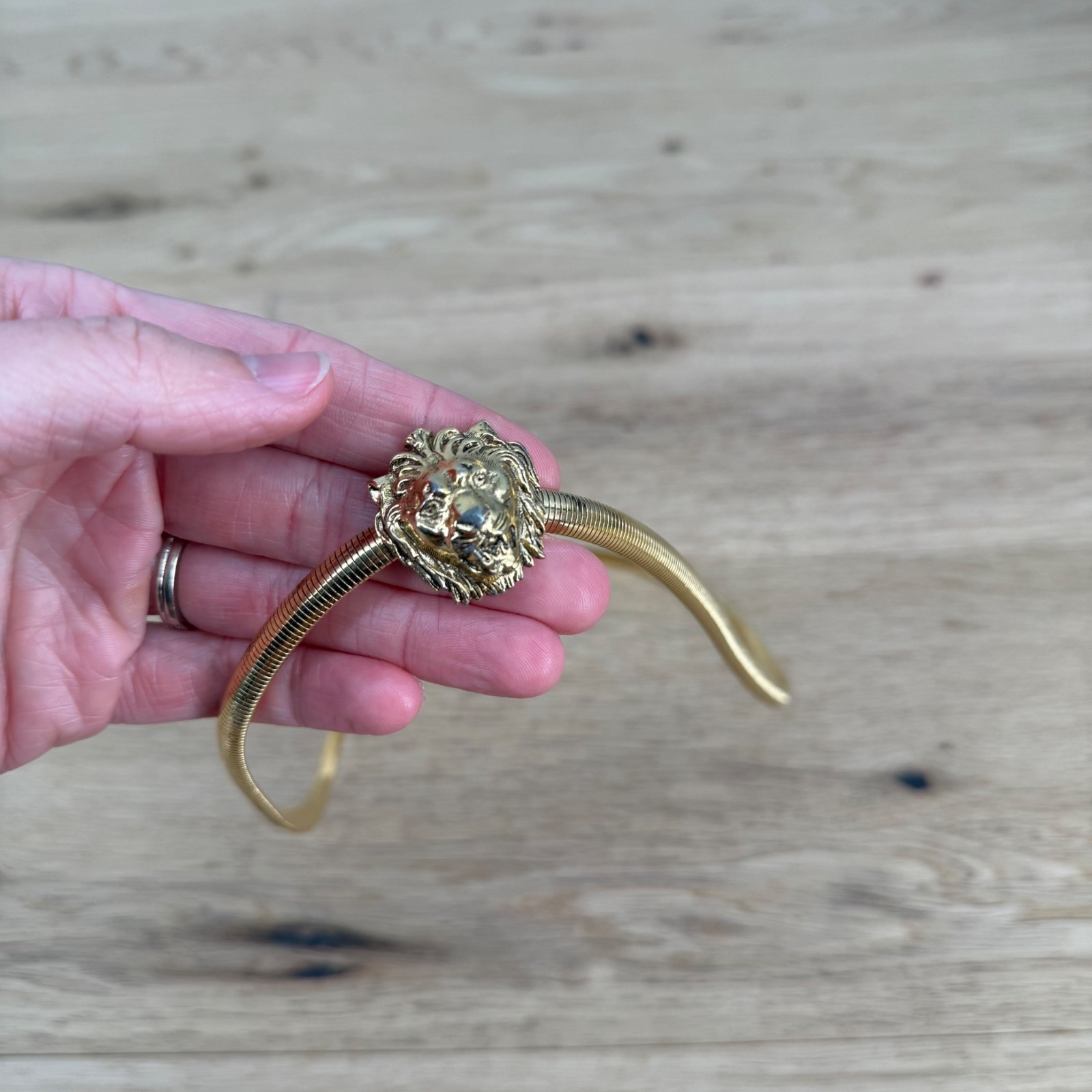 Accessocraft NYC VTG Lion Head Gold Tone Metal Stretch Coil Belt 27 80s USA