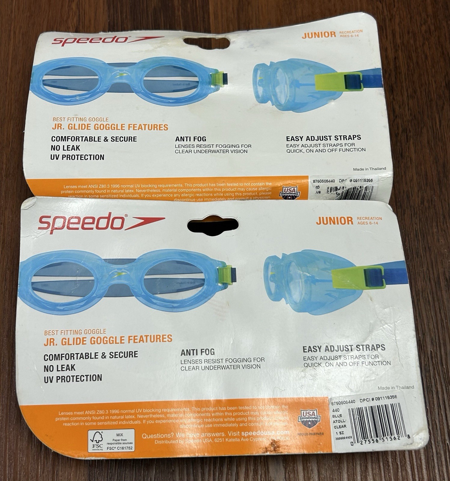 2 Speedo Glide W/ Comfort Bungee Strap No Leak Swimming Goggles Ages 6-14 Blue